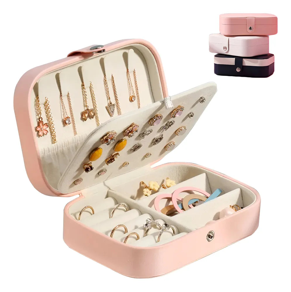 Contém vários compartimentos para guardar diferentes tipos de joias (anéis, pulseiras, brincos, colares), facilitando o transporte, seja para viagens ou simplesmente para levar consigo para qualquer lugar na sua bolsa.