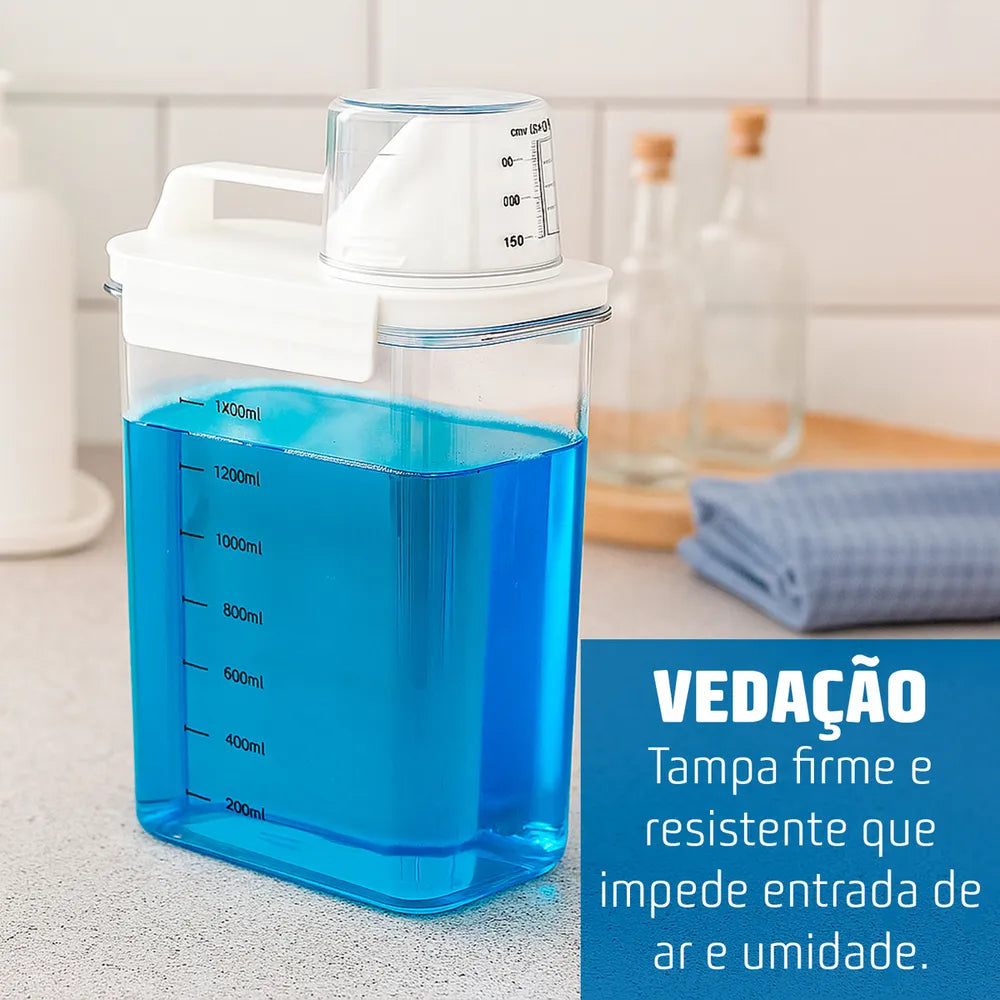 Versatilidade: Ideal para armazenar sabão em pó, líquido, amaciante, detergente e outros produtos.