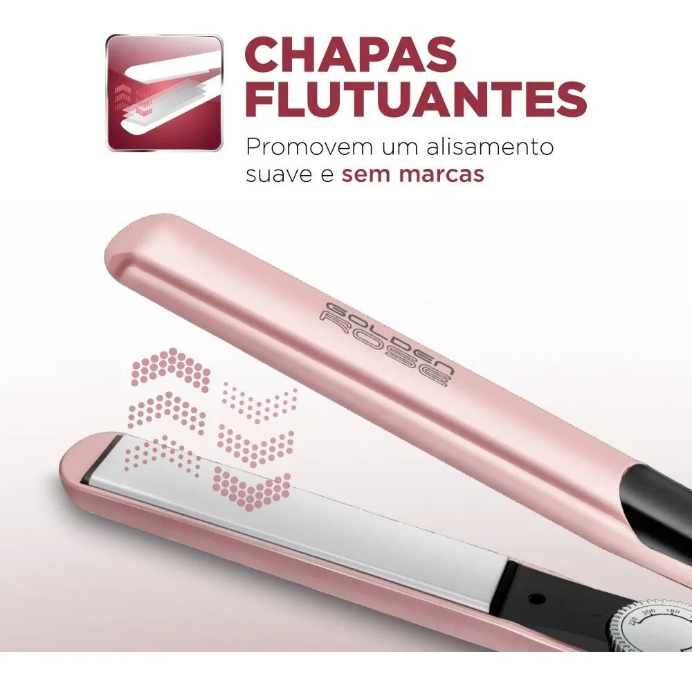 Essa chapinha é perfeita!! quase comprei a black rose, mas eu vi o vídeo da carol kyoko falando super bem da golden rose e decidi comprar. A diferença entre elas é que a golden você controla a temperatura. Na temp 160 já ficou ótimo e nem tem necessidade de ligar no máximo em cabelo fino. Meu cabelo é liso e está fragilizado por conta de um corte químico em uma mecha bem no topo, consegui tirar o volume do resto do cabelo e igualar e nem parece que tem uma mechona quebrada. Estou muito feliz com a aquisição e vou voltar a sair sem ficar com medo de debocharem do cabelo quebrado. Pode confiar que é muito boa mesmo.