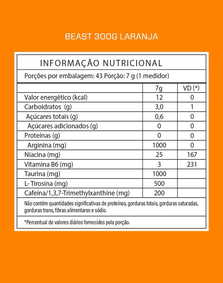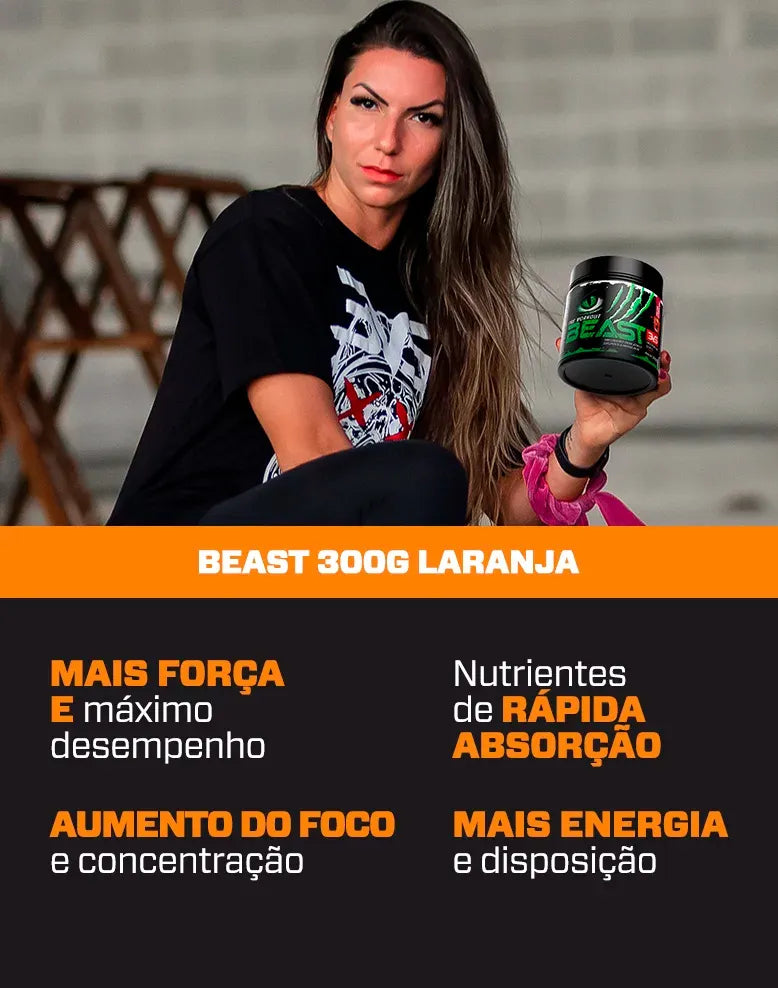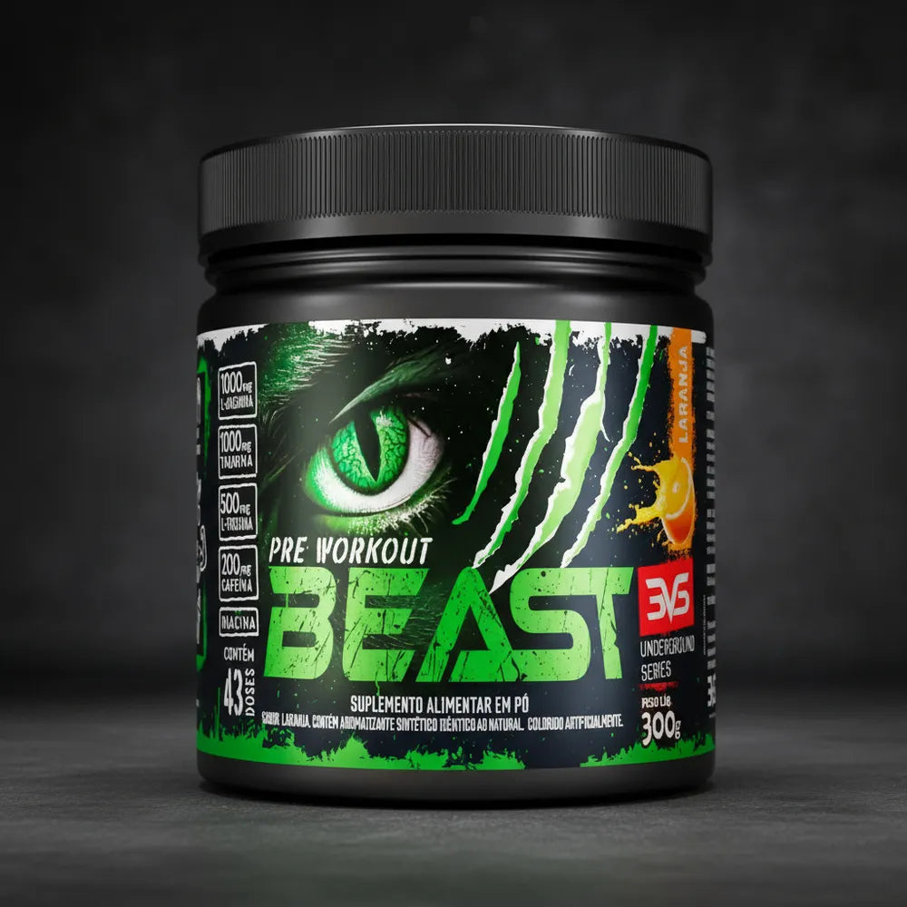 O Beast é um suplemento Pré Treino ultra concentrado, composto por 7 ingredientes: