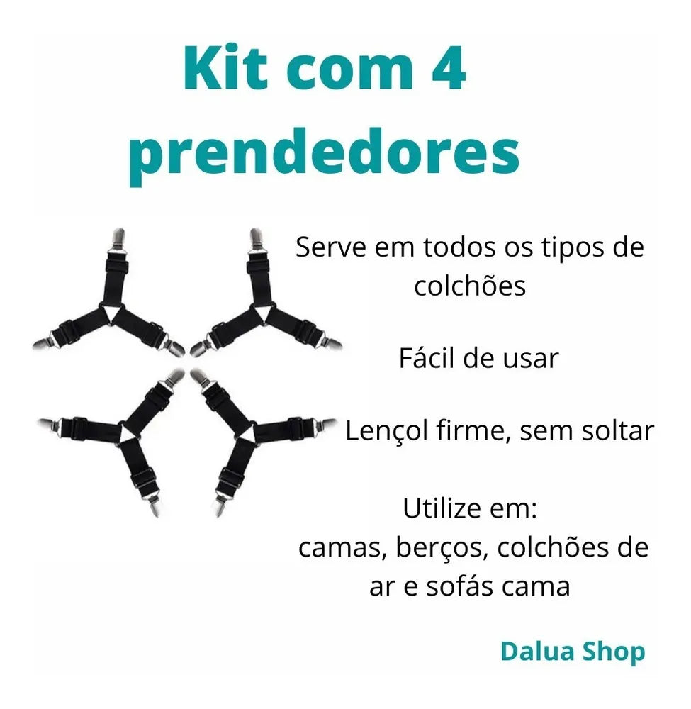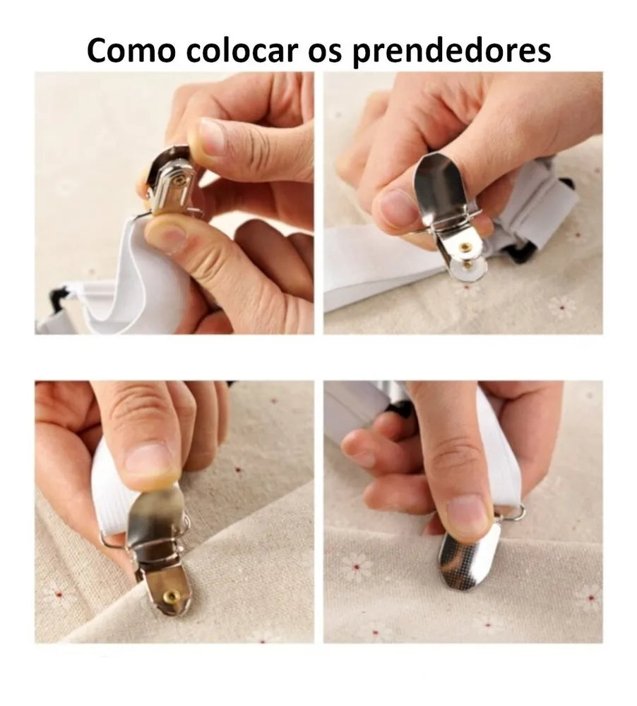 Cada jogo do Prendedor elástico acompanha 4 peças, que servem para fixar qualquer tamanho de lençol.