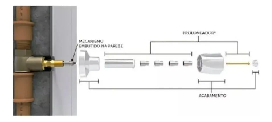Os prolongadores Blukit auxiliam no conserto de instalações nas quais os registros estão embutidos (enterrados) na parede.