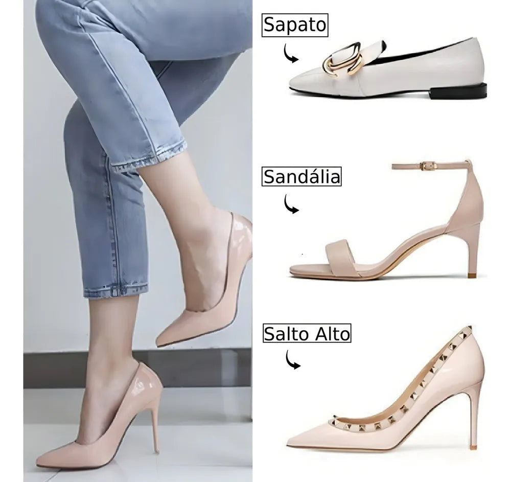 - Seu Design entrega um ajuste automático de espaço, evitando que os saltos escorreguem quando seu tamanho é grande demais, tornando os sapatos mais adequados e confortáveis.