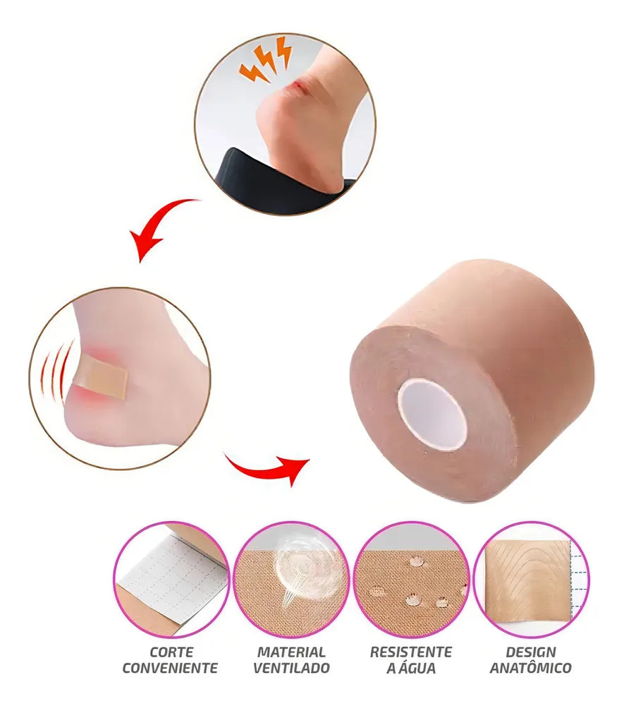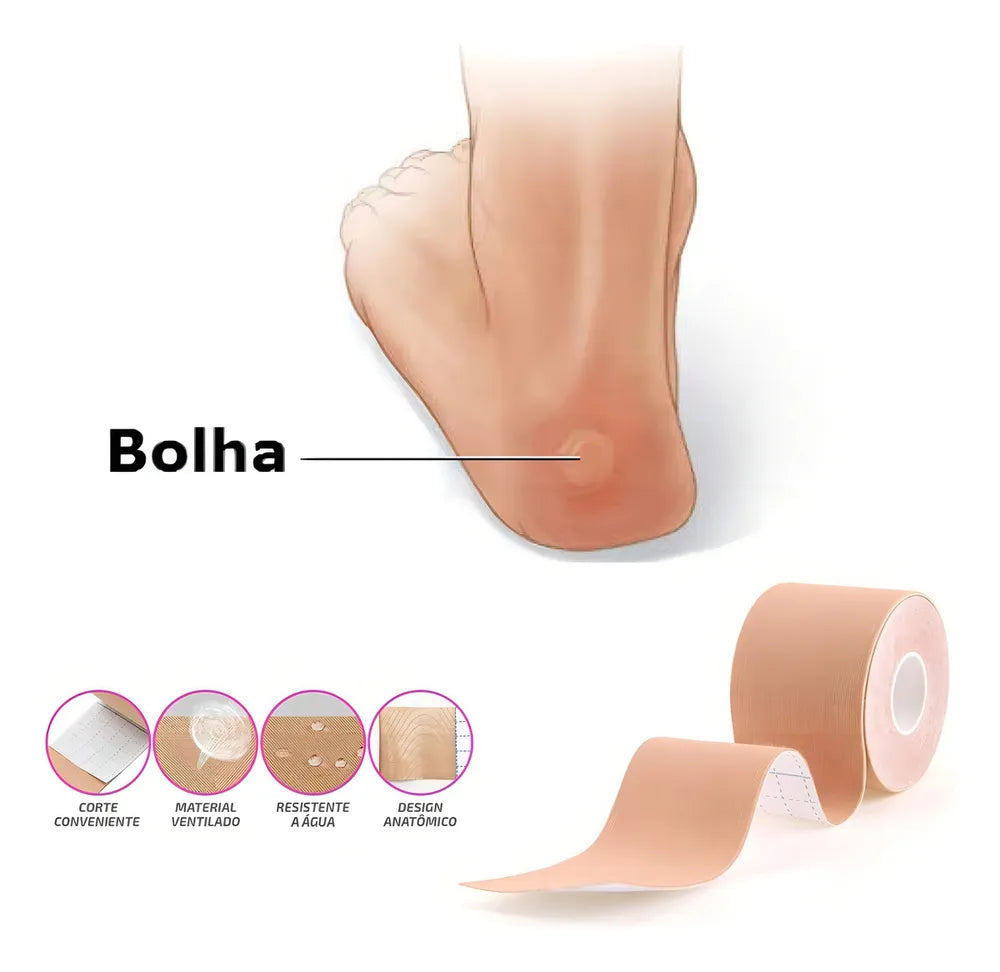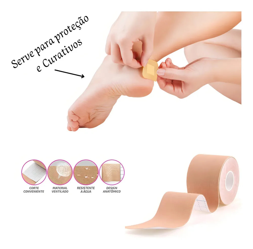 Rolo de fita multiuso, elástica, resistente a água, serve para pés, mãos, tornozelos, calcanhares e dedos, anti fricção e alivia os desconfortos causado por calos, bolhas, vermelhidão ou inchaço.