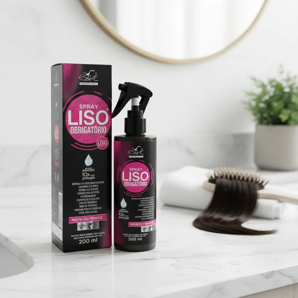 o Spray Liso Obrigatório, trata e protege o fio enquanto age como finalizador.