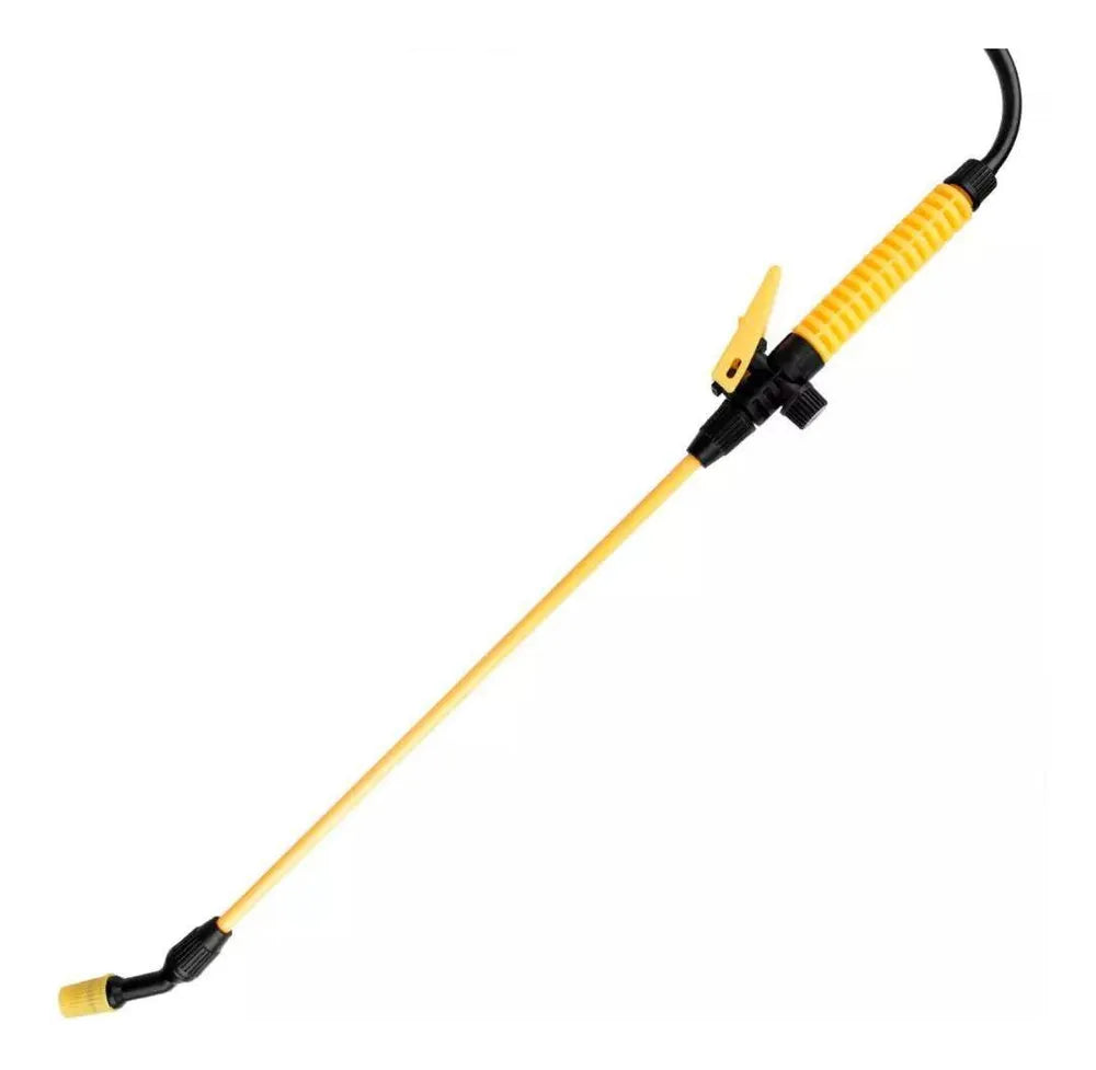 A ponta ajustável permite o controle da vazão de líquido conforme a necessidade, e a bomba de alta pressão ajuda na aplicação do produto, alcançando ampla área de superfície com uma única carga.