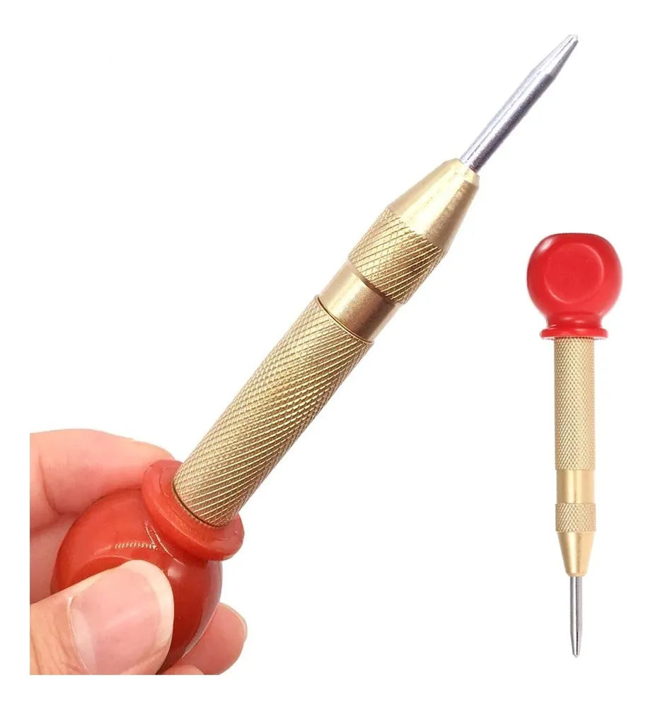 Ele é utilizado para marcações antes da perfuração com a broca e detalhe, ele é AUTOMÁTICO possuindo um sistema de molas que faz com que ele fixe um ponto com mais precisão, sem a necessidade de um martelo ou algo para empurra-lo. Apenas pressione de 1 a 4 vezes com a mão, e terá uma marcação extremamente PRECISA.