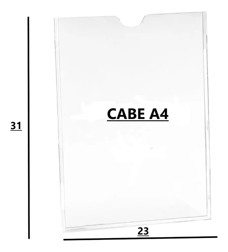 O modelo do produto é Display, o que significa que é projetado para ser simples e fácil de usar. Este display sem fundo é mais econômico, prático e fácil de usar, adaptando-se a qualquer ambiente. Com o Display Acrílico A4 Ref. 10090013 - Maxcril, a exibição de documentos nunca foi tão fácil e elegante.