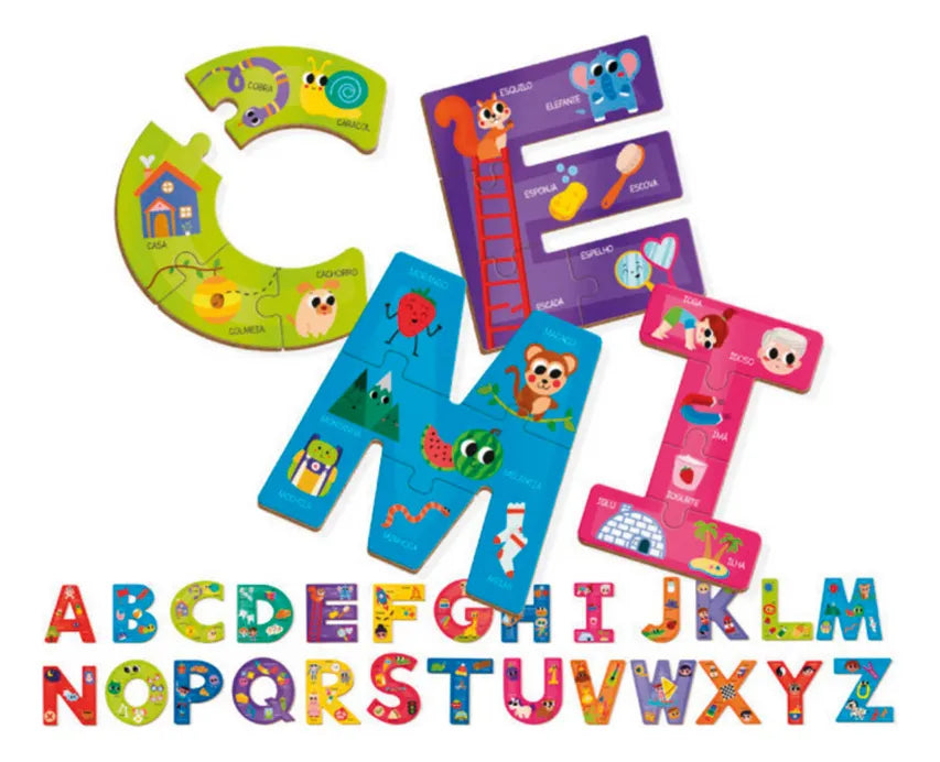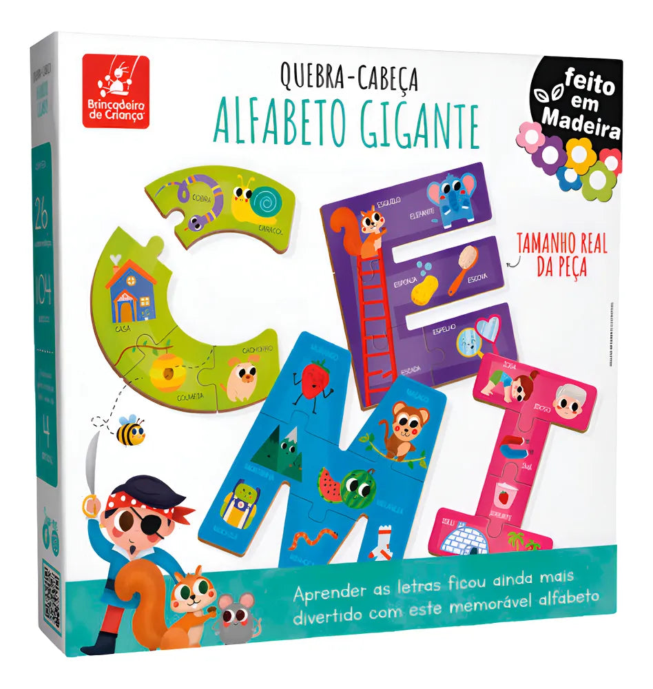 Meu filho amou o brinquedo. Anda com as pecinhas pra cima e pra baixo. Tem o alfabeto de a a z. O tamanho das letras são do tamanho que aparece na capa. Recomendo.