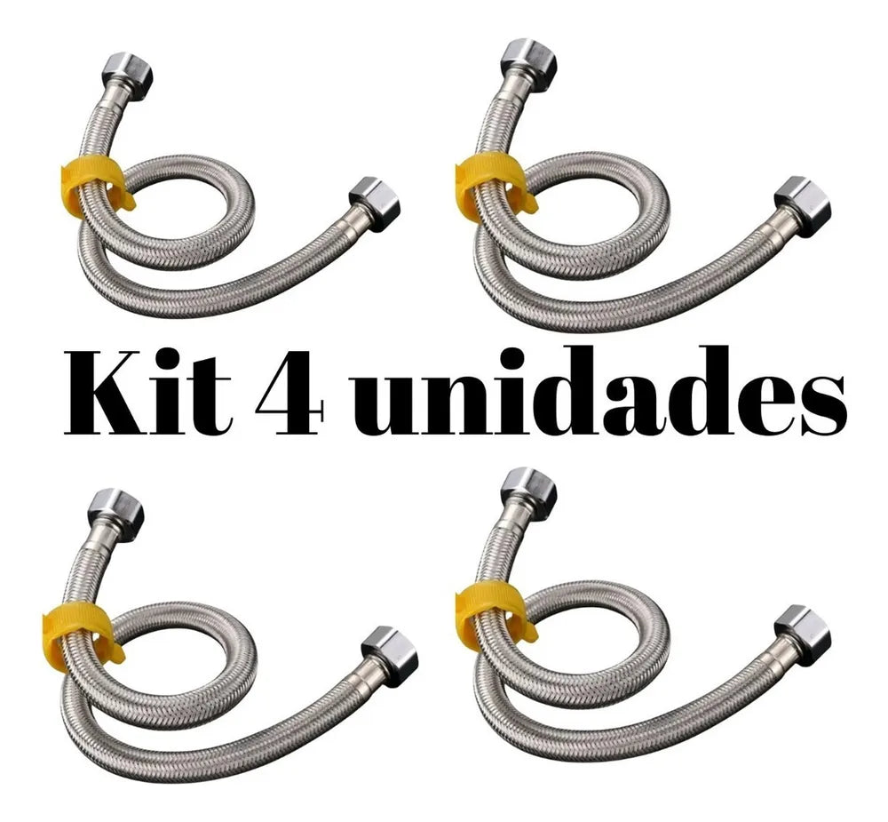 Apresentamos o Kit com 4 unidades de Rabicho Flexível em Aço Inoxidável, ideal para diversas aplicações em sua casa. Com um tamanho de 50 cm, este produto é perfeito para instalação em banheiros, cozinhas, pias e vasos sanitários. A sua construção em aço inoxidável garante durabilidade e resistência à corrosão, enquanto a borracha utilizada proporciona um vedamento eficiente. Este modelo é do tipo monocomando e possui um furo para fácil instalação. Além disso, é um item novo, sem validade, que se encaixa perfeitamente na linha de torneiras e acessórios para banheiro. Aproveite a versatilidade e a qualidade deste rabicho flexível, que se adapta a diferentes lugares de colocação, oferecendo praticidade e funcionalidade ao seu dia a dia.