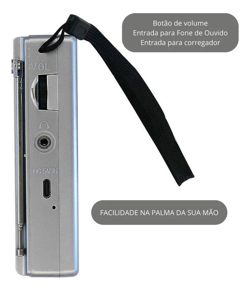 Preto 5V - Rádio de bolso Preto ou Prata AM/FM;