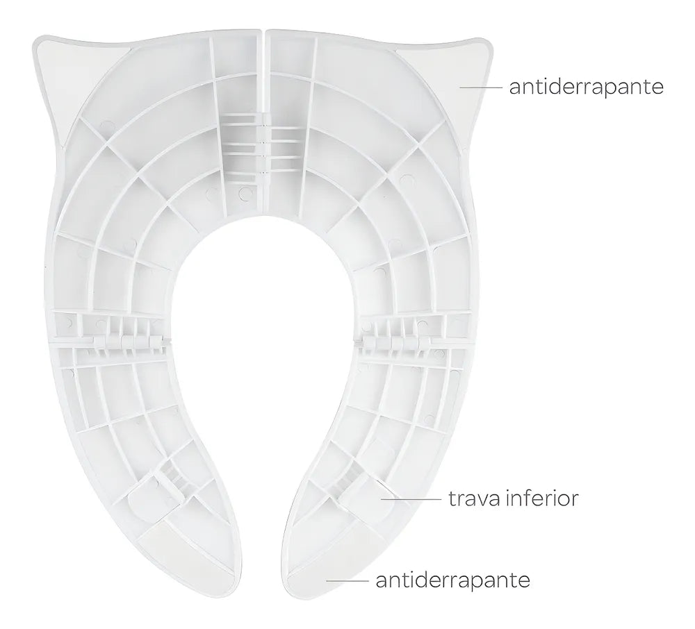 Ideal para passeios e viagens! Higiênico, evita que a criança sente diretamente no vaso sanitário. Compacto e fácil de transportar, auxilia na fase em que a criança começa a utilizar o vaso sanitário de forma independente, possui base antideslizante, proporcionando maior segurança.