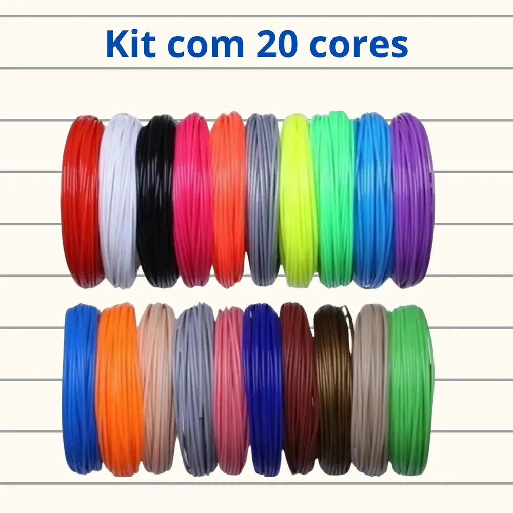 Refil Filamento PLA Kit 20 Cores 100m Caneta 3D Impressora
