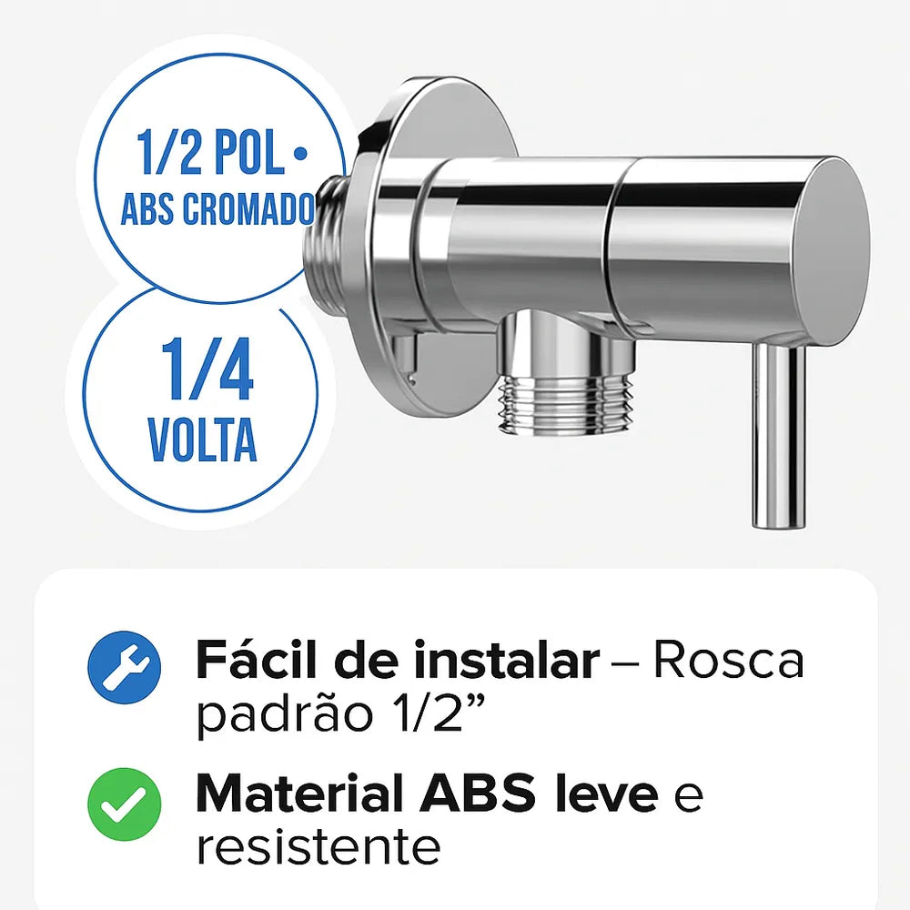 Compatível com saídas padrão de 1/2 pol. Instalação simples, sem necessidade de mão de obra especializada. Indicado para duchas higiênicas, torneiras de tanque, lavatórios e jardins.