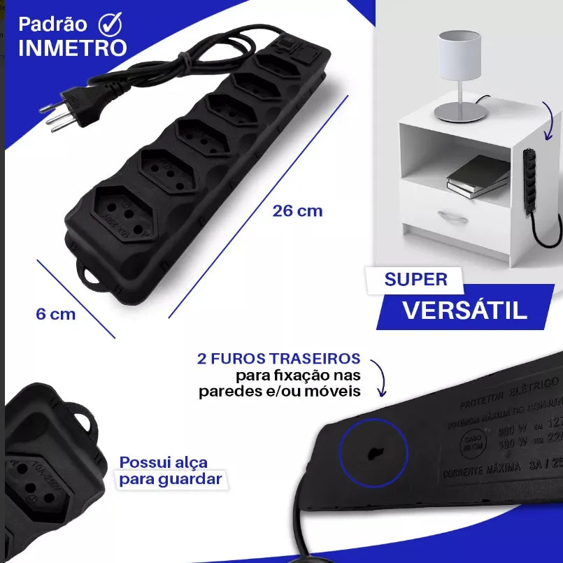 6 Tomadas – Perfeita para conectar computadores, carregadores, TVs, eletrodomésticos e muito mais.
