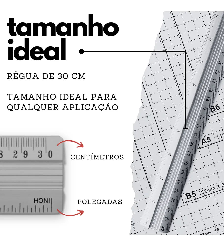 Apresentamos a Régua De Alumínio 30cm, uma ferramenta essencial para todos os profissionais e estudantes que precisam de precisão e durabilidade em suas medições. Esta régua de alumínio de alta qualidade, com um comprimento de 30 cm, é perfeita para todas as suas necessidades de desenho e medição.