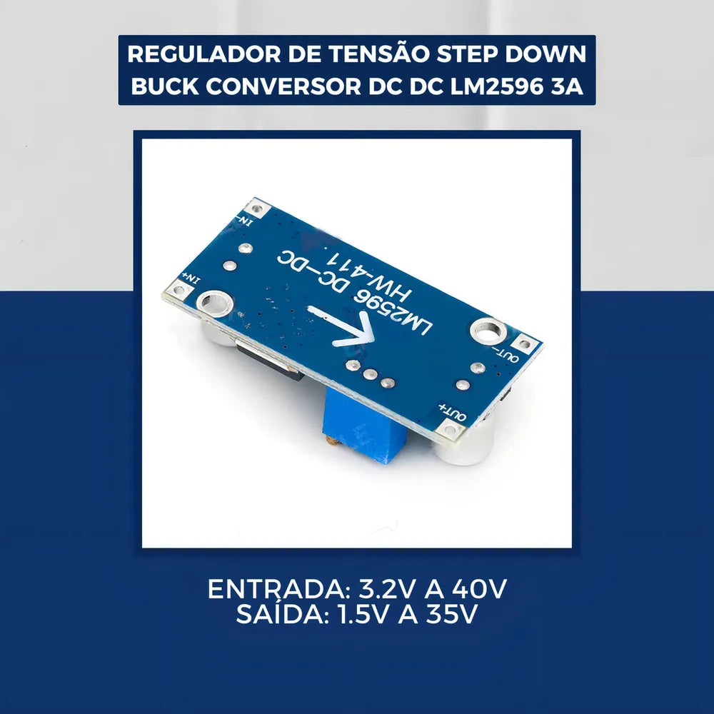 Apresentamos o Regulador de Tensão Step Down Buck Conversor DC-DC LM2596 3A, uma solução eficiente e versátil para ajuste de tensão em projetos eletrônicos. Com esse conversor, você poderá transformar uma fonte de tensão mais alta em uma tensão ajustável e estável de acordo com suas necessidades.