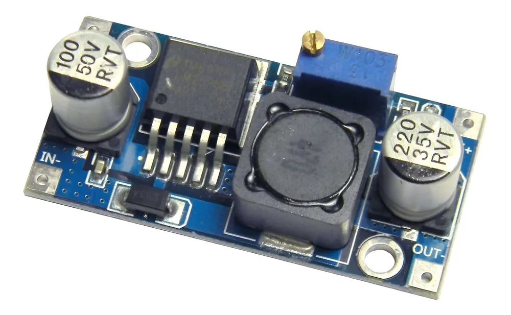 Composto pelo regulador chaveado LM2596, o Módulo Regulador de Tensão trabalha com tensões de entrada de 3,2V a 40V, oferecendo em suas saídas tensões de 1,5V a 35V que podem ser ajustadas conforme a necessidade.