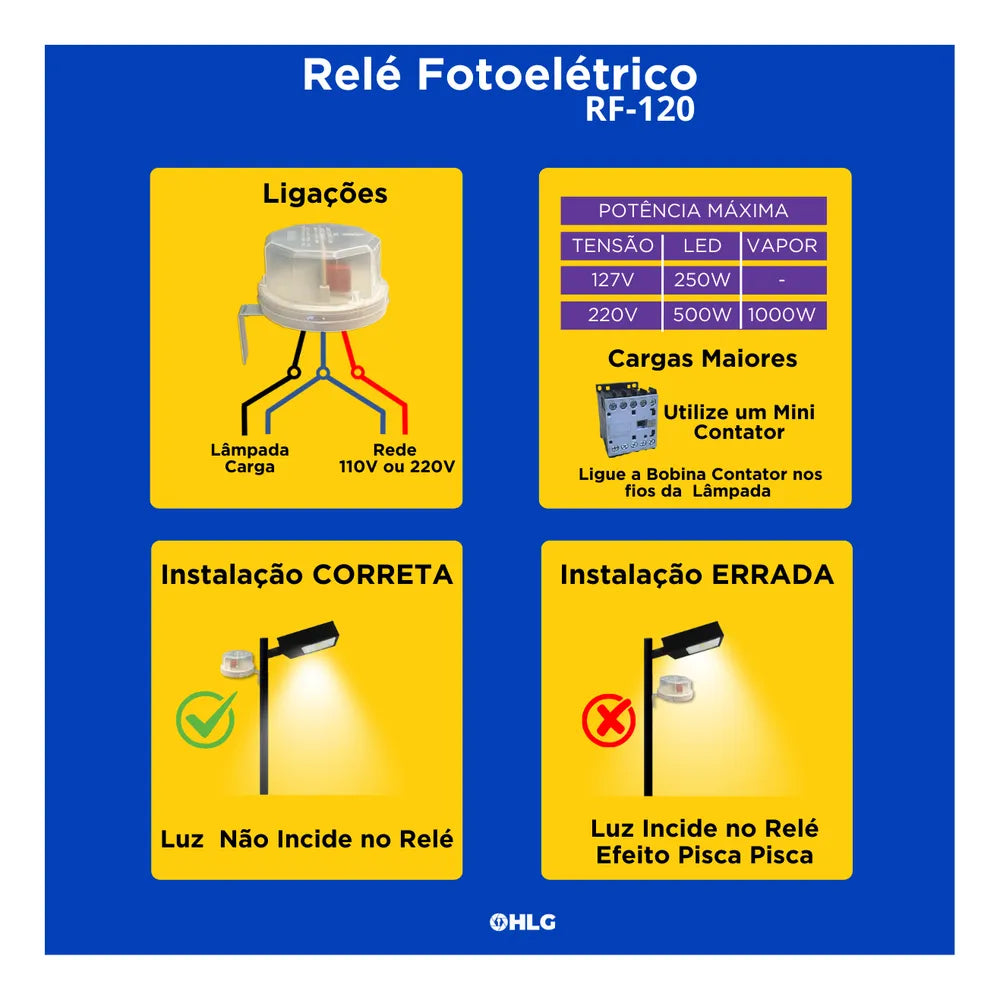 - Acende automaticamente a Luz ao anoitecer e Apaga automaticamente ao amanhecer