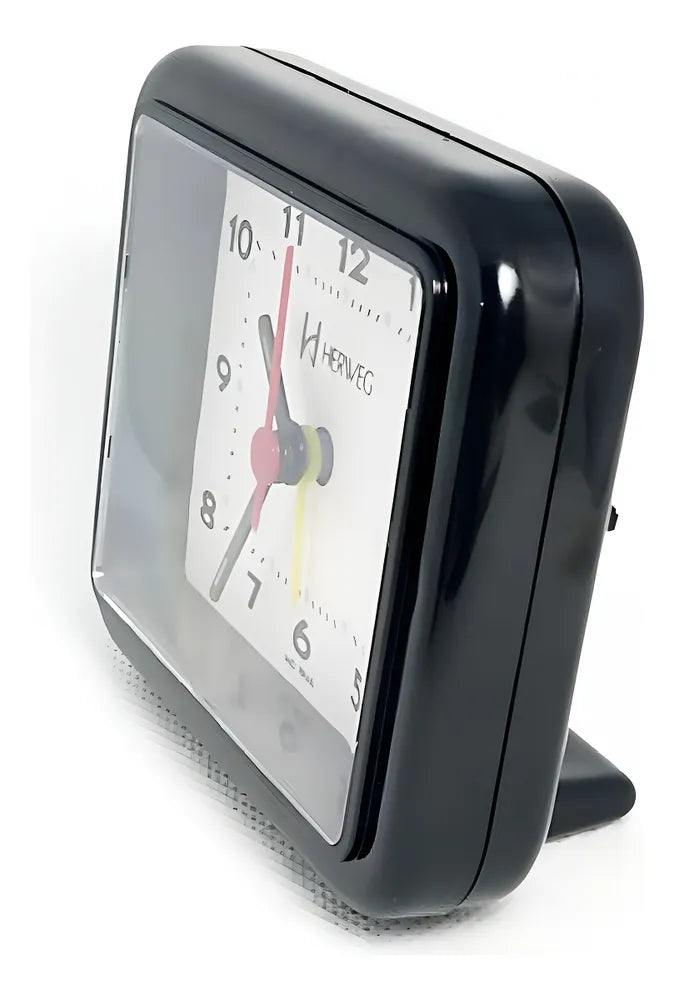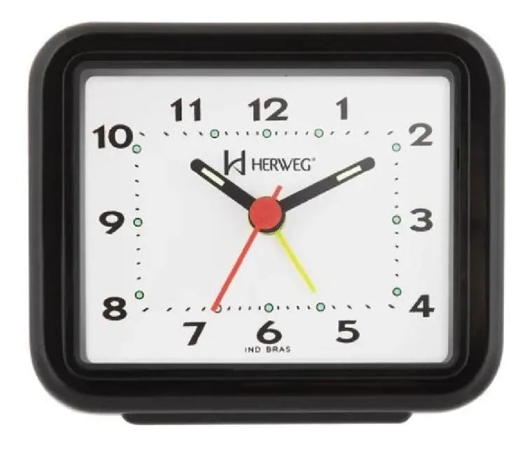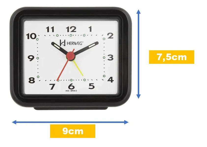 O Relógio Despertador Herweg 2612 possui um visor analógico de fácil leitura, com números grandes e bem visíveis, facilitando a visualização das horas mesmo à distância. Seu formato quadrado e cor preta conferem um toque de elegância e sofisticação ao ambiente, seja no quarto, escritório ou sala de estar.