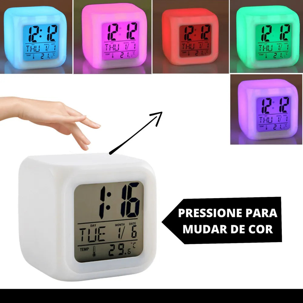 Transforme a sua experiência de despertar com o Relógio Digital Cubo Branco RGB. Este relógio apresenta um design cúbico moderno que se integra perfeitamente em qualquer ambiente, seja no quarto, escritório ou sala de estar. Com dimensões compactas de 8 cm x 8 cm, ocupa o espaço ideal na sua mesa de cabeceira.
