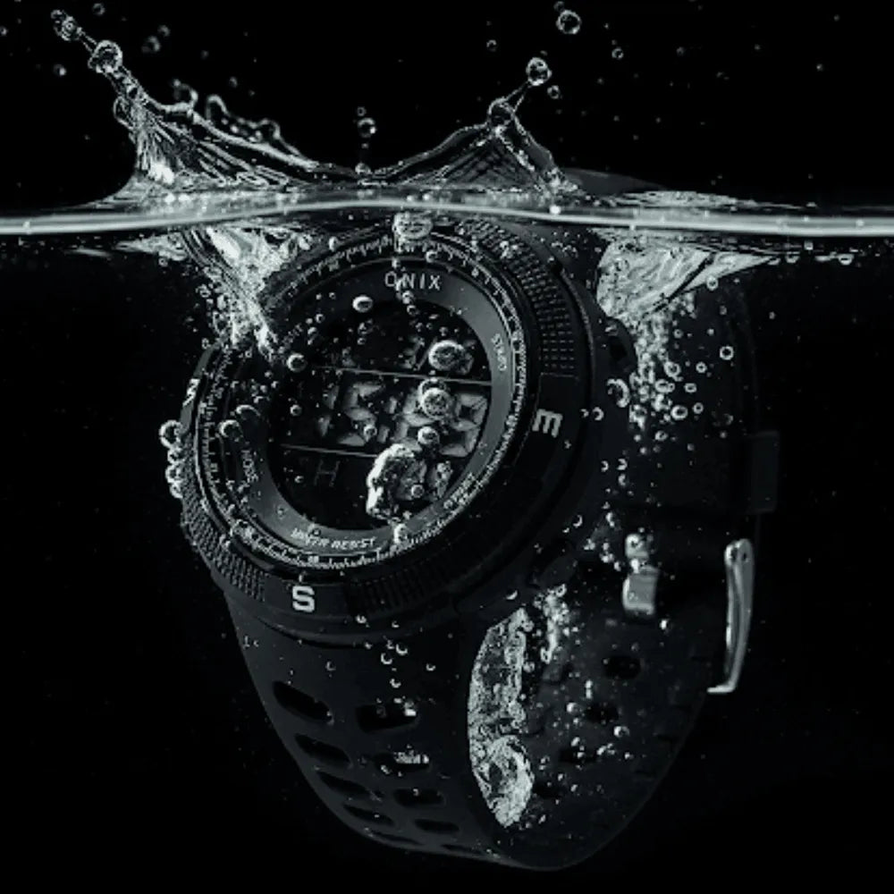 Resistência à Água: O recurso à prova d'água é uma das características mais importantes. Esse tipo de relógio é projetado para suportar imersão em água, com classificações de resistência variando de 50 metros (5ATM). Essa classificação indica a profundidade até a qual o relógio pode ser submerso com segurança.