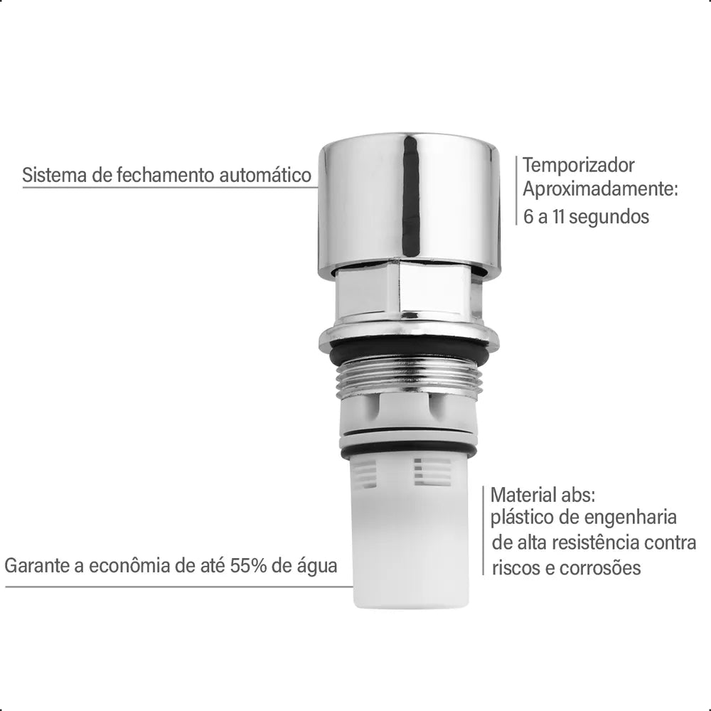 Reparo Automático tem como principal função diminuir o desperdício de água. Seu acionamento é automático temporizado liberando apenas a quantidade necessária para cada uso.