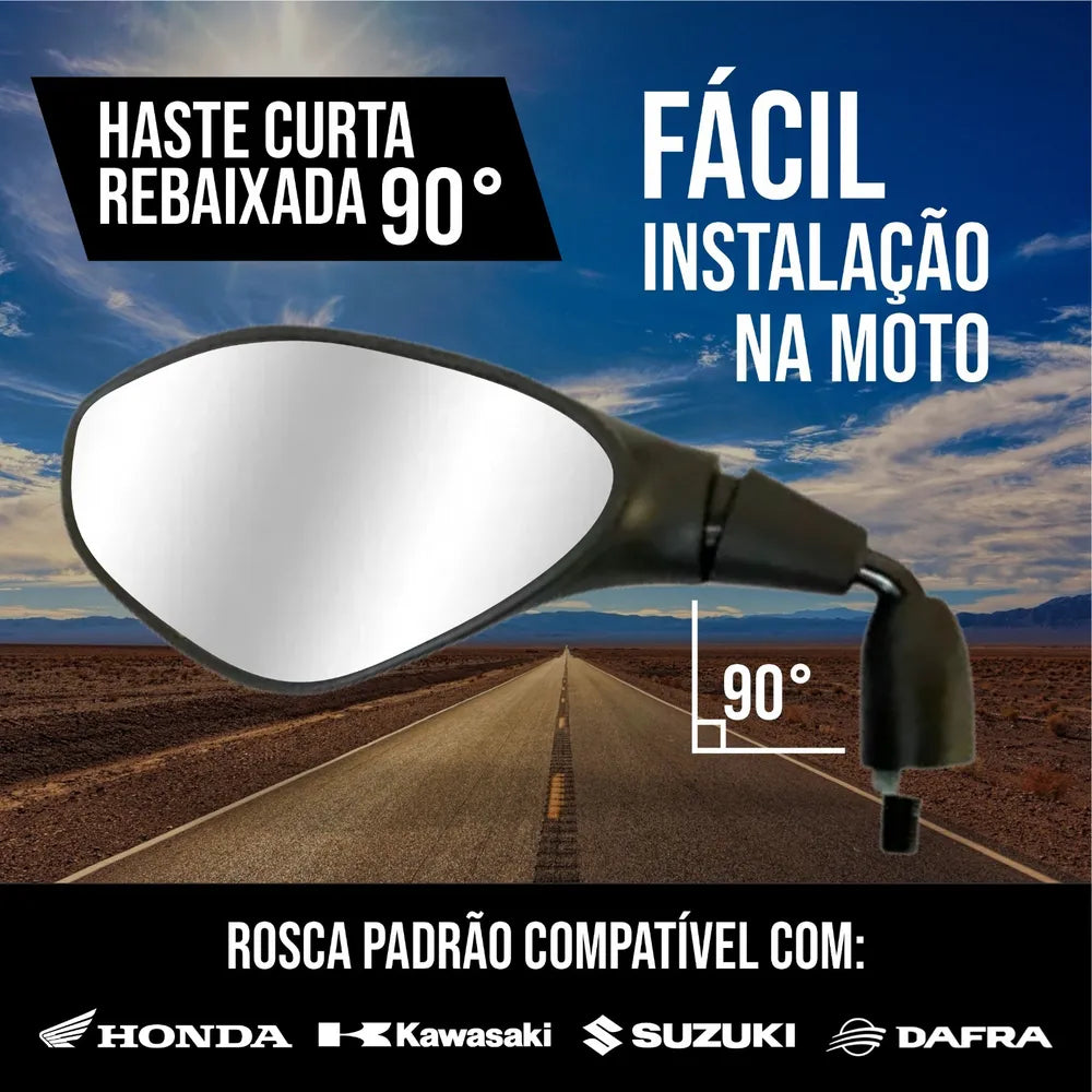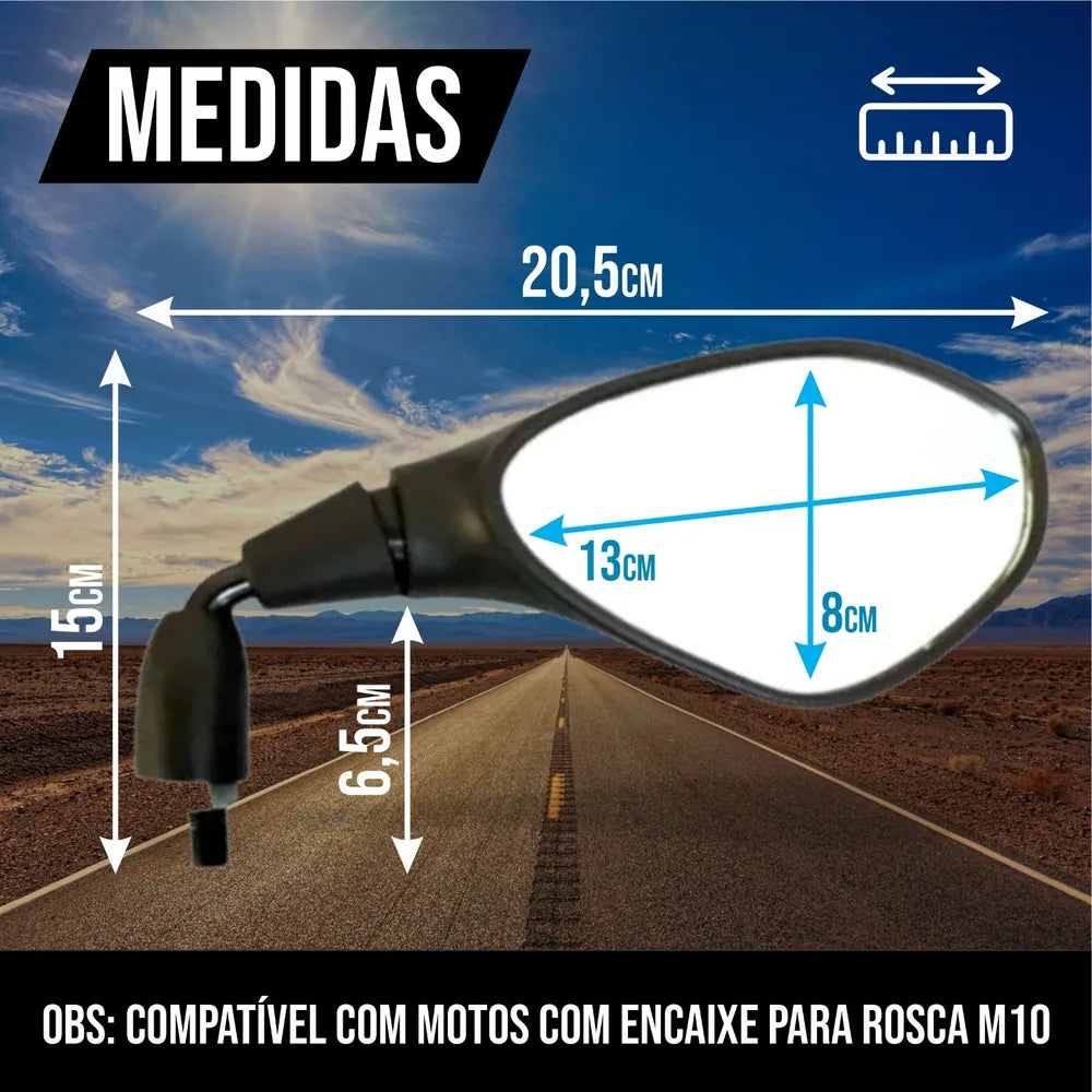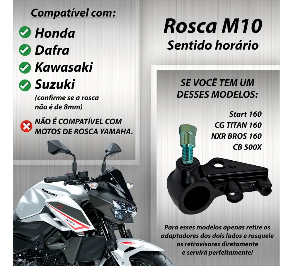 Rosca do Retrovisor: Compatível com motos com encaixe para rosca 10mm (M10) sentido horário!