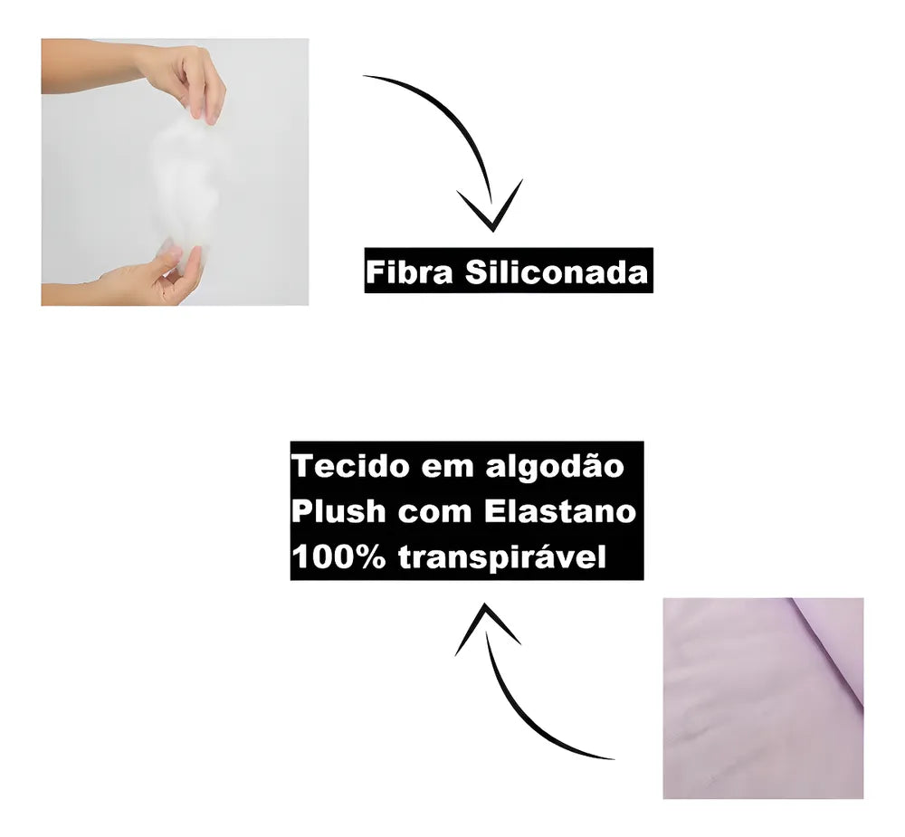 A parte externa em contato com o seio é feita em tecido plush em algodão.