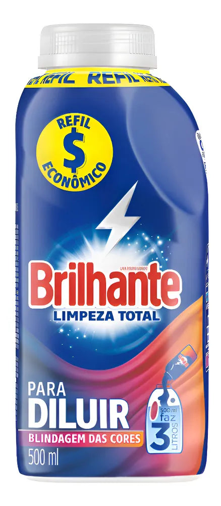 • O Brilhante Limpeza Total Para Diluir é um produto inovador, econômico e sustentável. Com 500 ml você prepara 3 litros de sabão líquido.