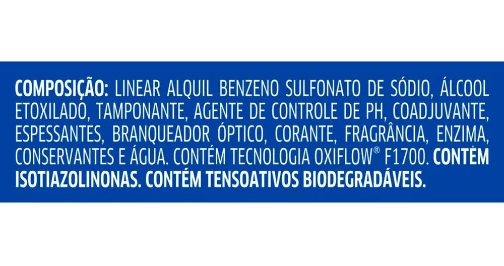 • Contém tecnologia de Brilho Ativo e enzimas para uma limpeza profunda, mantendo as roupas brancas sem amarelamento e as coloridas com cores vivas.