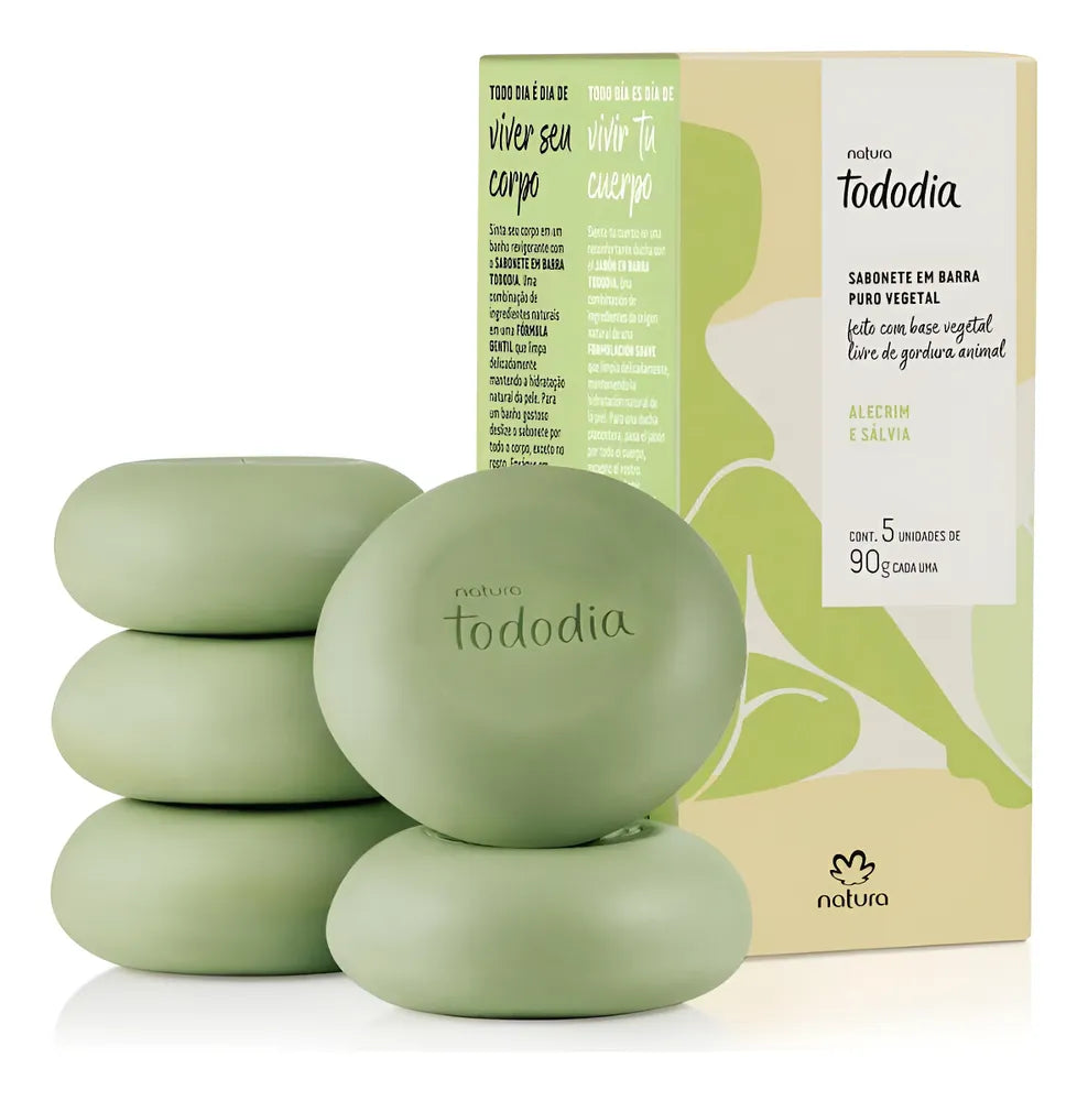 O Sabonete em Barra Tododia Alecrim e Sálvia é a escolha perfeita para quem busca uma limpeza delicada e eficaz. Com 97% de ingredientes de origem natural, sua fórmula suave não apenas limpa, mas também proporciona uma hidratação intensa, deixando a pele macia e sedosa. Ideal para todos os tipos de pele, este sabonete é livre de álcool e testado dermatologicamente, garantindo segurança e conforto durante o uso. Além disso, é vegano, refletindo um compromisso com o bem-estar animal. Com um perfume envolvente, transforma o momento do banho em uma experiência sensorial única. Experimente a combinação nutritiva e inteligente dos hidratantes Natura Tododia e sinta a diferença na sua pele.