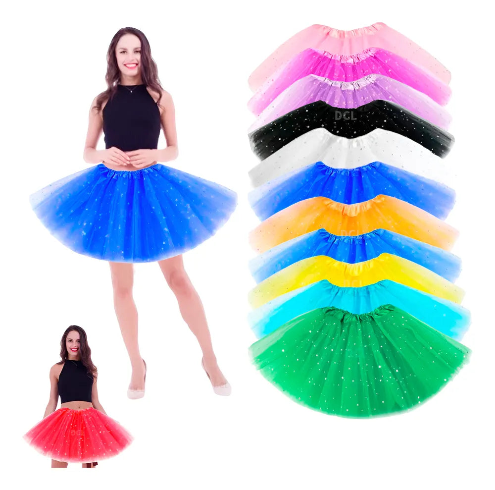 Azul - Saia de tule para festas, carnavais, festivais, apresentações, danças e toda ocasião que quiser usar, confortável e com brilho para você arrasar na sua festa.