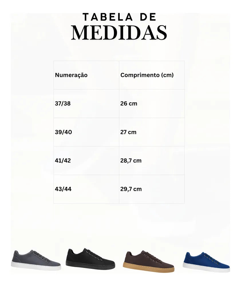 Atenção: esses sapatênis possuem formato um pouco grande, portanto, é importante considerar esse detalhe na hora de escolher o tamanho.