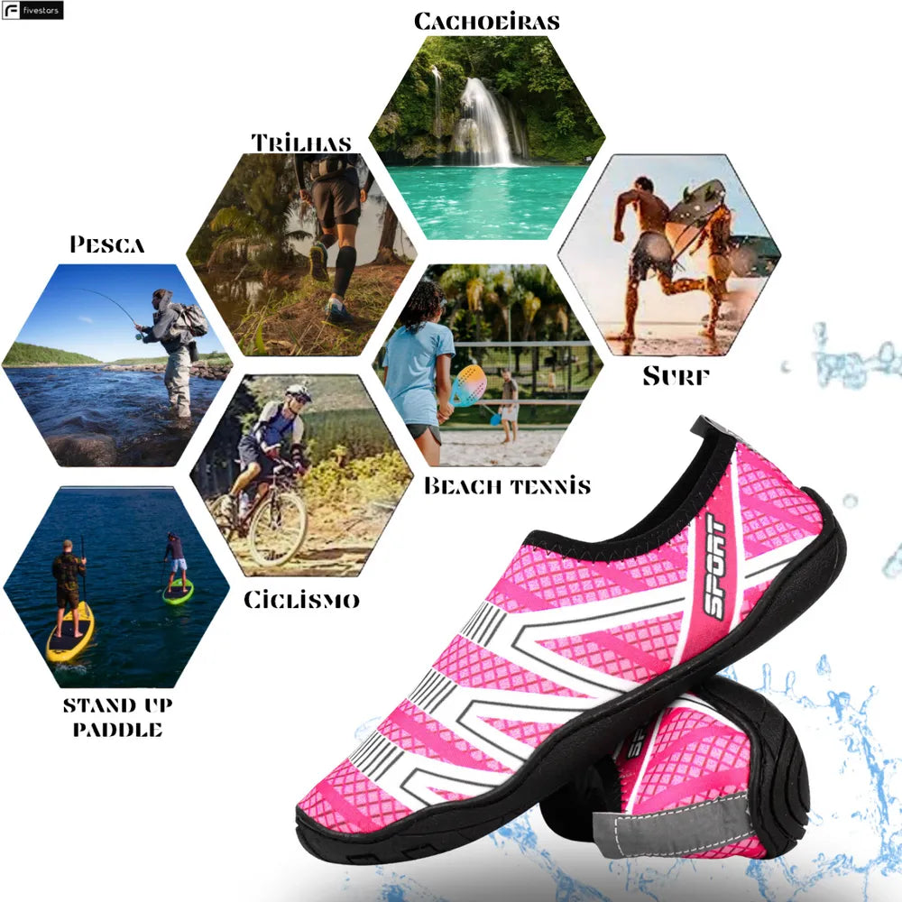 - O tênis proporciona alta performance e segurança aos praticantes de atividades terra-água!