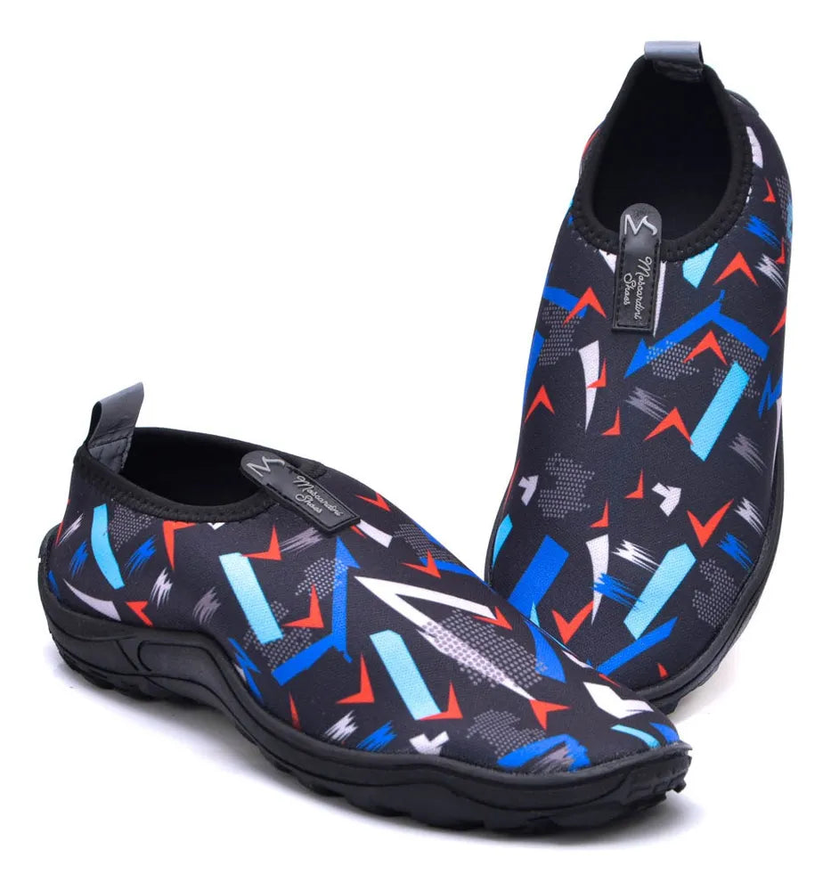 A sapatilha é feita de material NEOPRENE, o que ajuda para uma secagem rápida e boa ventilação. Um material altamente resistente, leve e totalmente ajustável, perfeito para todos os tipos de terreno e até mesmo para natação e mergulho.