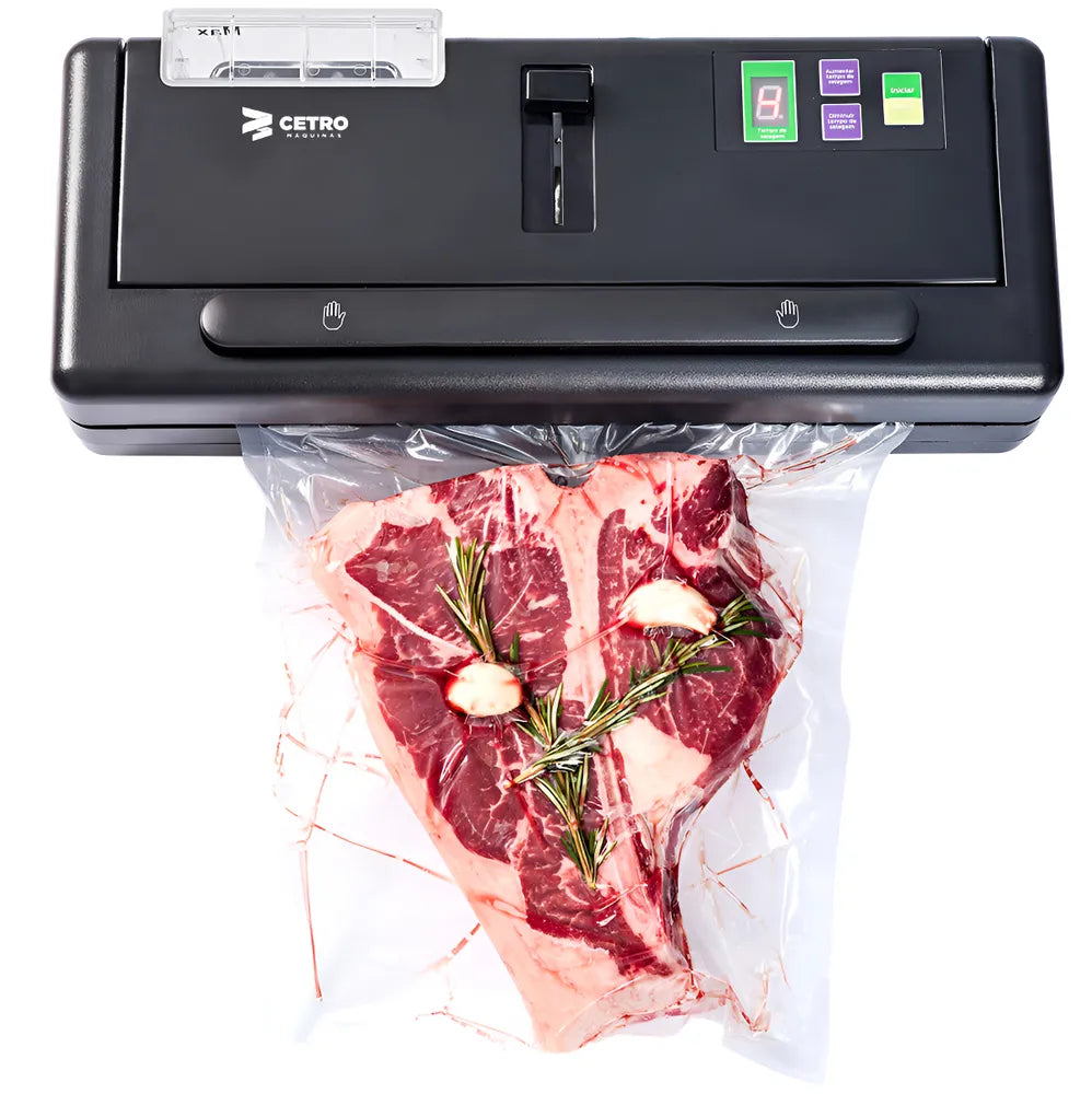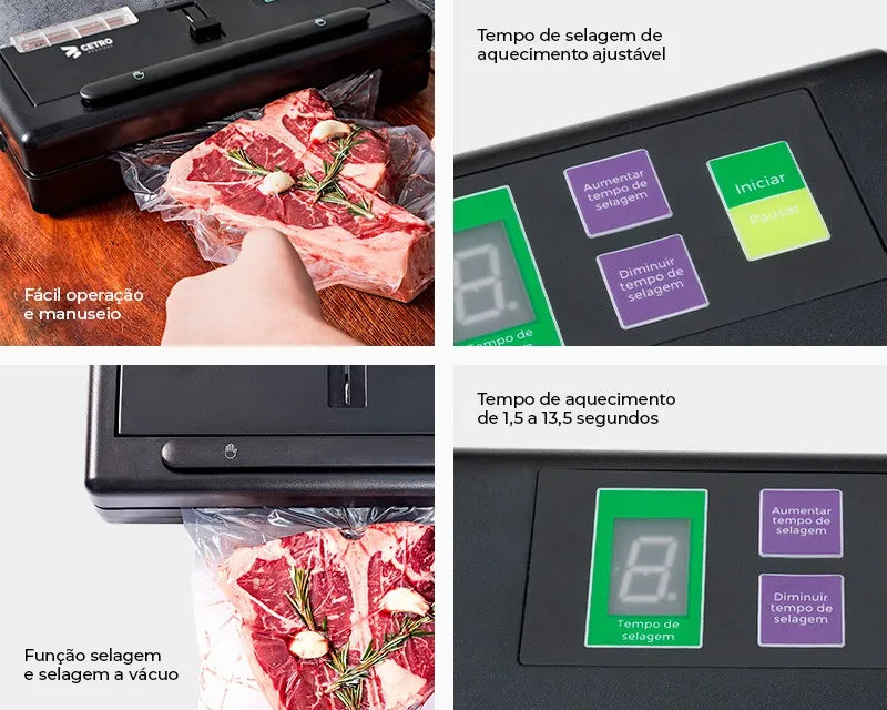 - Painel digital com timer de selagem;