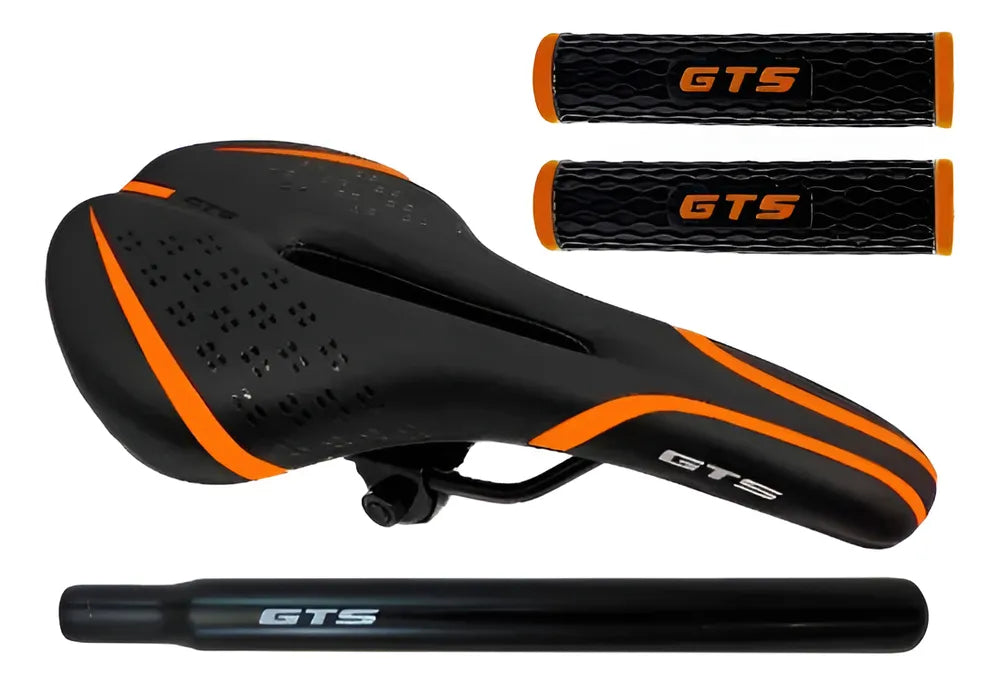 Laranja - Kit Banco Selim Vazado Gts Com Manopla Gts E Canote Gts 27.2