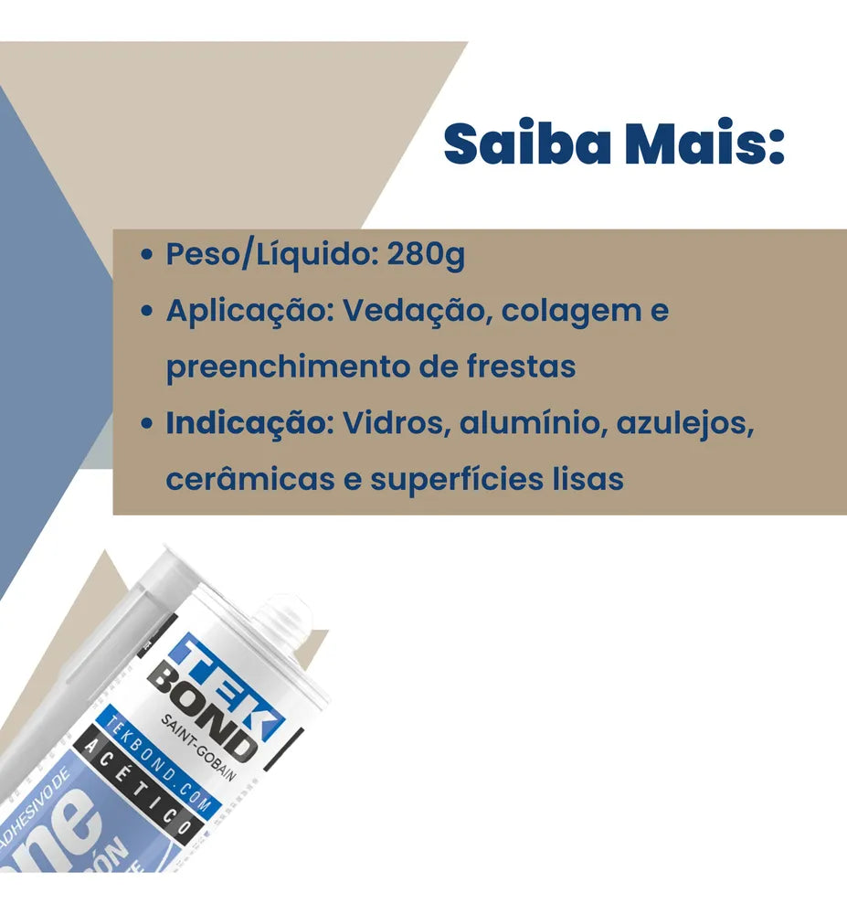 O Silicone Acético Transparente Tek Bond, com uma capacidade de 280g, destaca-se como uma solução versátil, amplamente empregada na indústria da construção civil para vedar e selar uma variedade de elementos, incluindo pias, vasos sanitários, boxes de banheiro, portas e janelas. Sua formulação oferece uma resistência excepcional aos raios ultravioleta, o que o torna adequado para aplicação em ambientes externos.