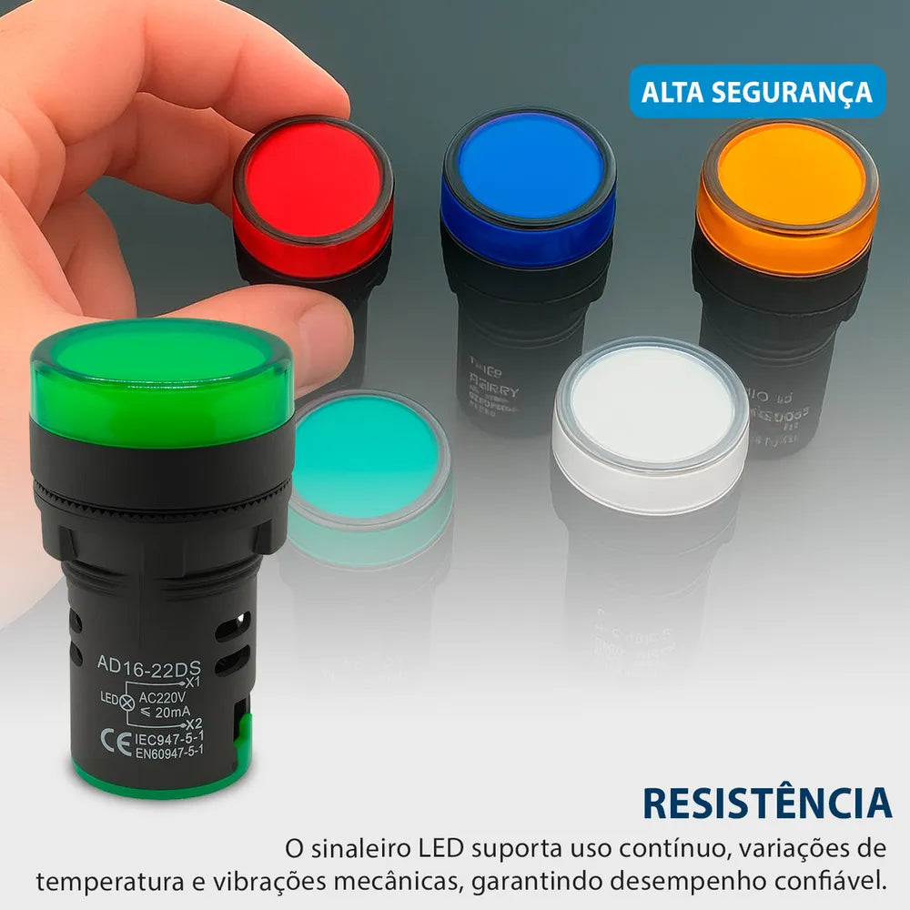 • Dispositivo de sinalização desenvolvido para instalação em painéis de comando, quadros elétricos e equipamentos industriais. Sua função é indicar, de forma clara e imediata, o estado de operação de máquinas e sistemas, trazendo mais segurança e praticidade no dia a dia.