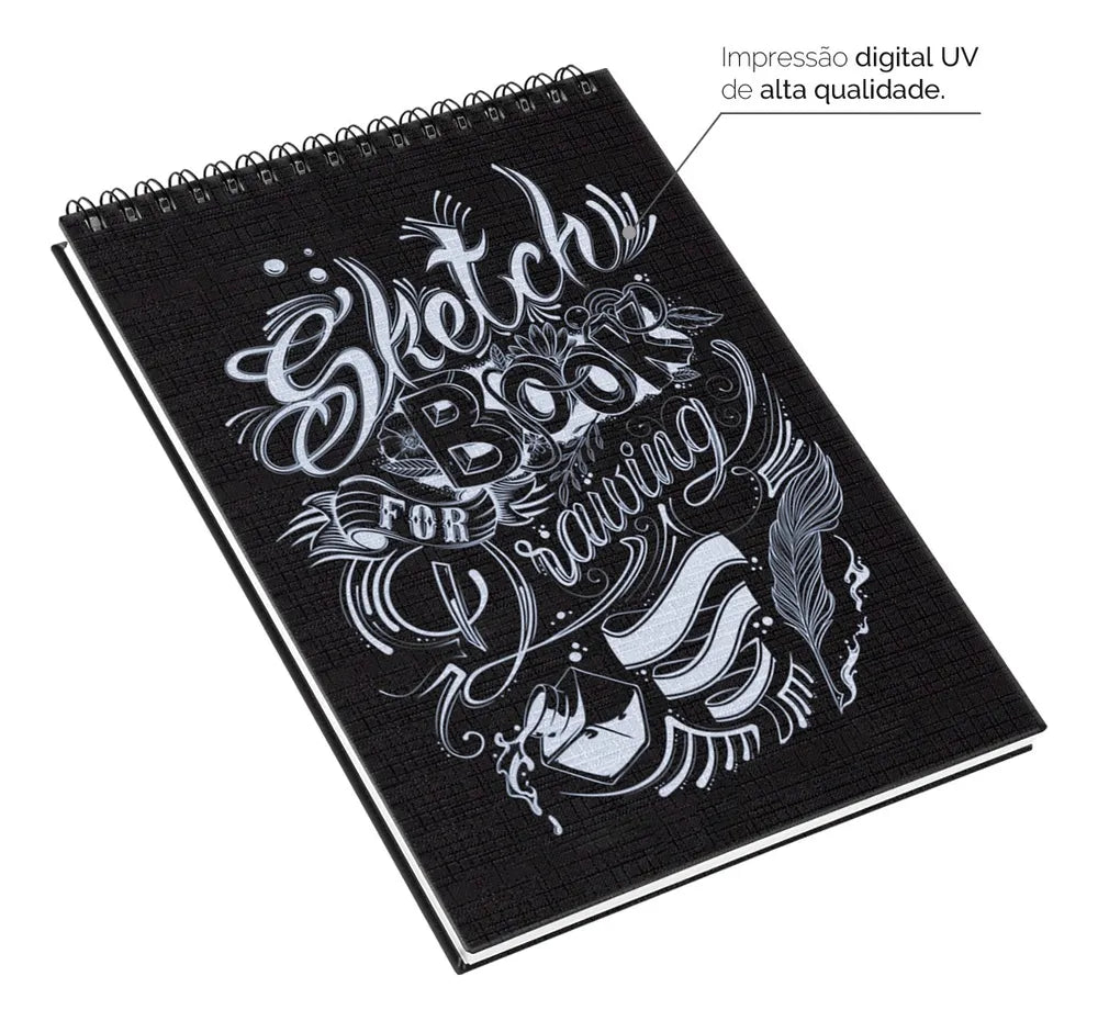 A capa dura do Sketchbook é revestida com laminado sintético texturizado, dando assim um toque sofisticado e um visual com estilo único. Ela é impressa com tecnologia UV de alta definição de imagens onde os detalhes são reproduzidos com riqueza e vivacidade!