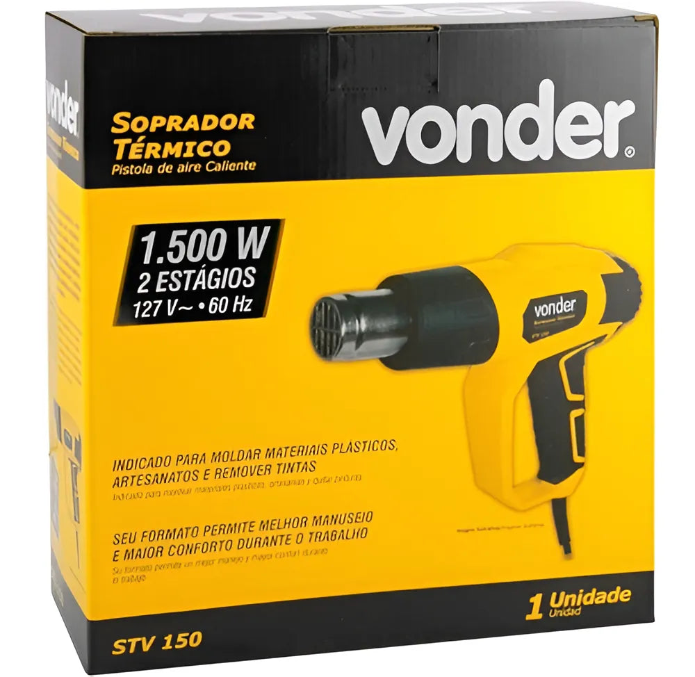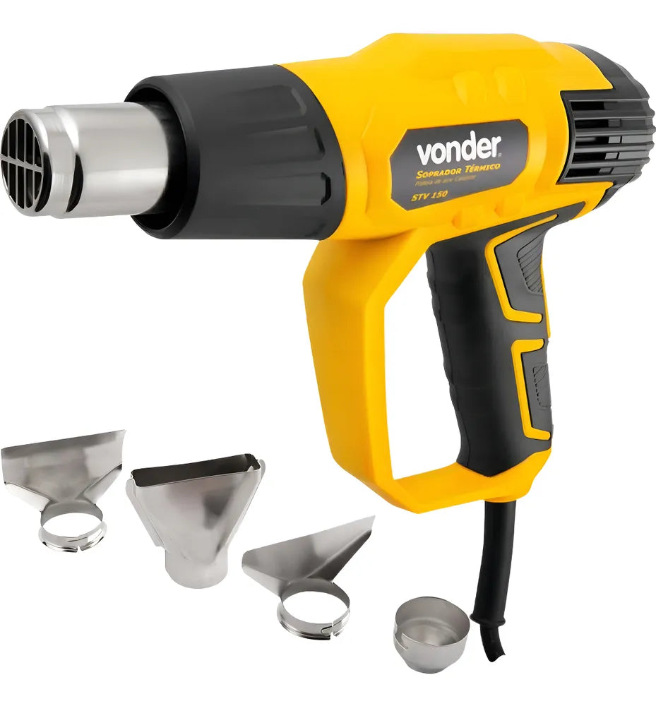 Soprador Térmico 1500w 2 Estágios Stv150 4 Bicos Vonder 220v é indicado para moldar materiais plásticos, artesanatos e remover tintas. Produz um fluxo de ar de alta temperatura, sendo ideal para profissionais como encanadores, marceneiros, carpinteiros e pintores. É também muito útil em fábricas de móveis e em atividades relacionadas à moldagem de materiais plásticos, moldagem e instalação de canos de PVC, remoção ou secagem de pinturas, aplicação de películas, entre outras.