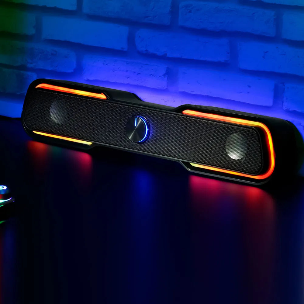Soundbar gamer com LED’s RGB para aprimorar o som nas suas músicas, jogos e filmes.