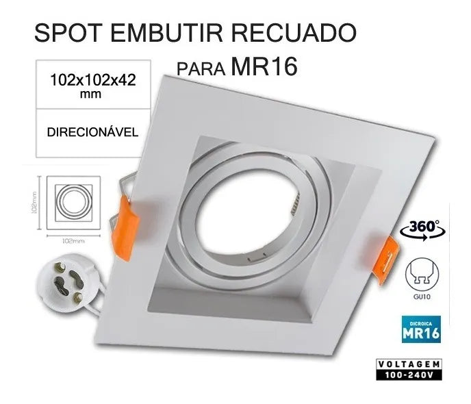 Spot de Embutir Quadrado Recuado Mr16 + Led GalaxyLed 6,5w