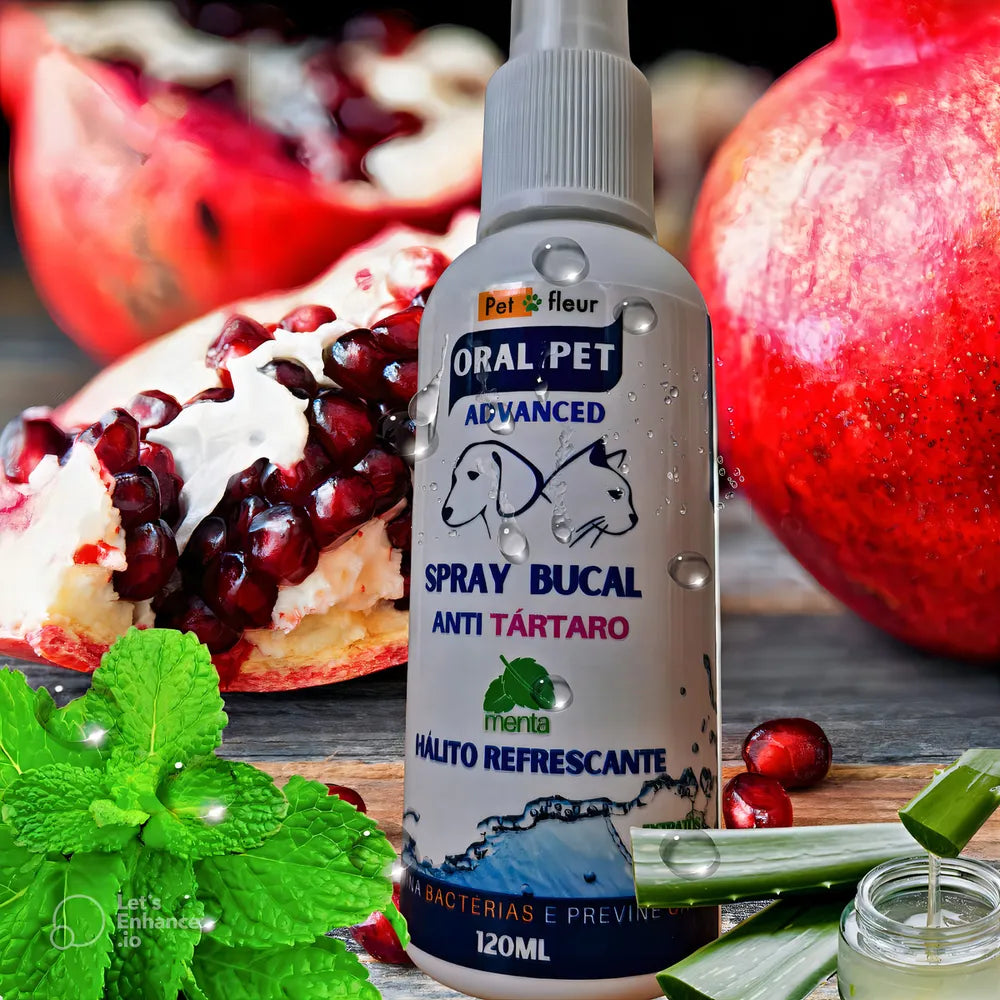 O ORAL PET - Advanced da Petfleur é uma solução bucal 100% natural, especialmente desenvolvida para prevenir o tártaro, cáries e bactérias causadoras do mau hálito. Este produto contém um blend de poderosos extratos naturais, como extrato de romã, canela do Ceilão, hortelã pimenta e suco de aloe vera orgânico.