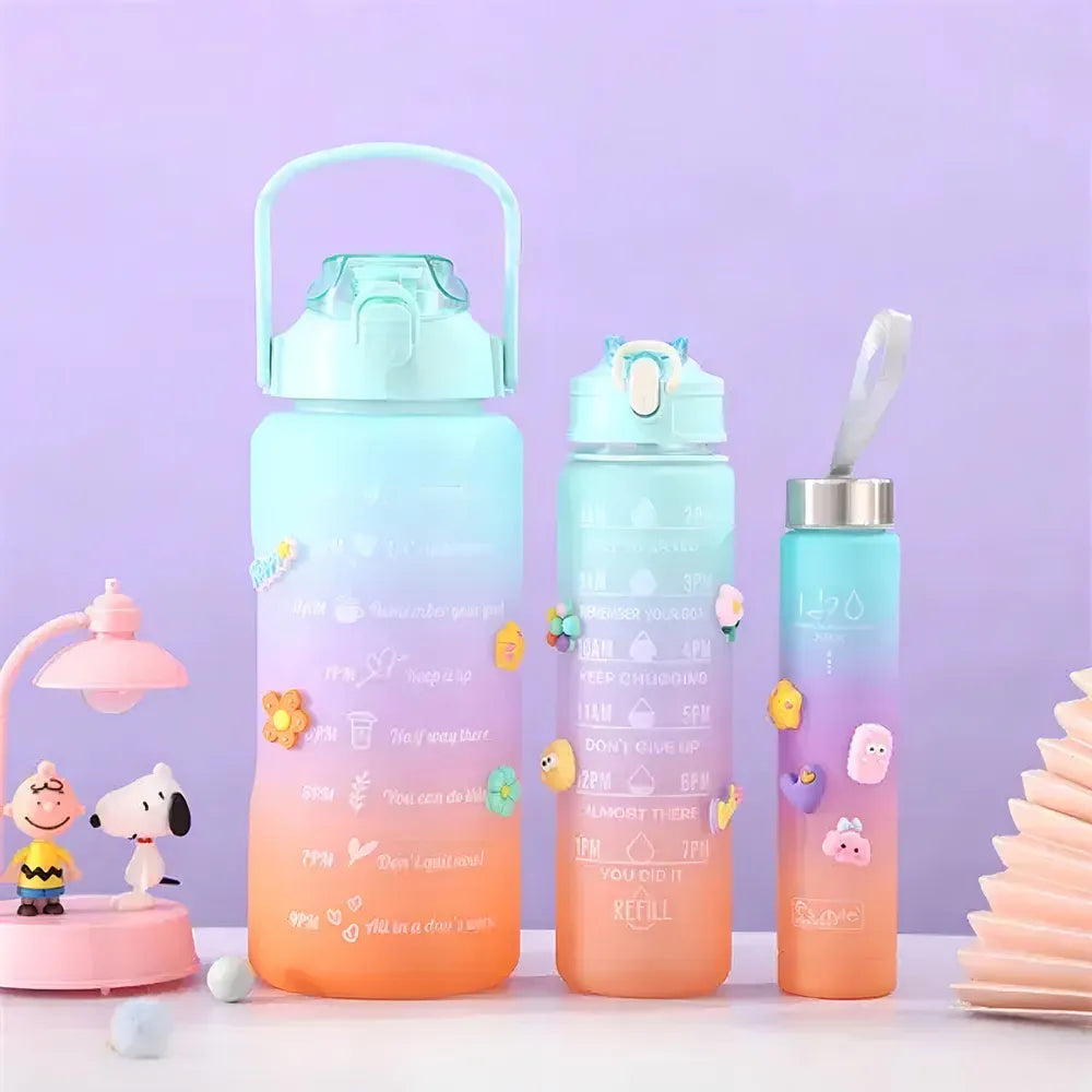 A garrafa possui marcações para que você possa acompanhar o seu consumo de água diário e frases motivacionais.