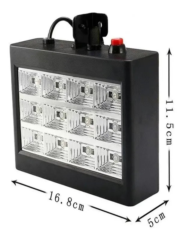 Strobo Rítmico RGB com 12 LEDs de alta qualidade, pequeno, leve e compacto.