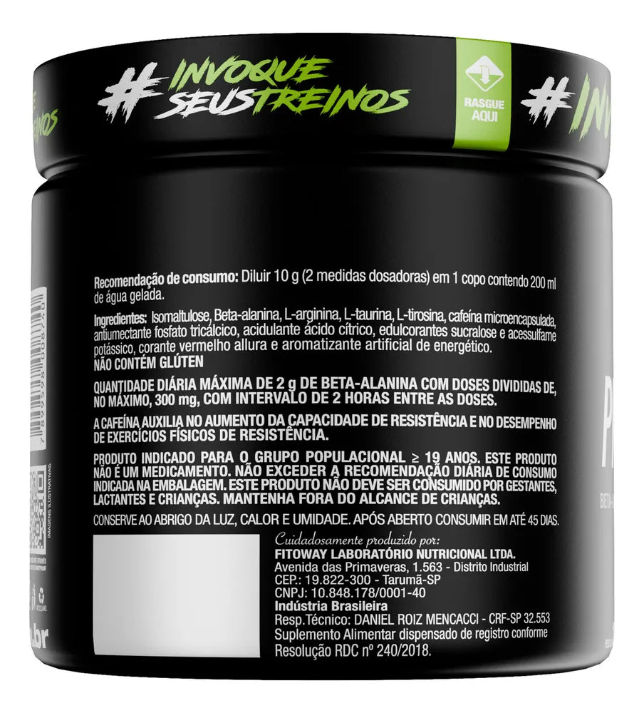 Diabo Verde #Pre-Workout é um suplemento alimentar em pó com combinação de aminoácidos e cafeína, desenvolvido para consumo antes da prática de atividades físicas, conforme orientação de profissional habilitado.