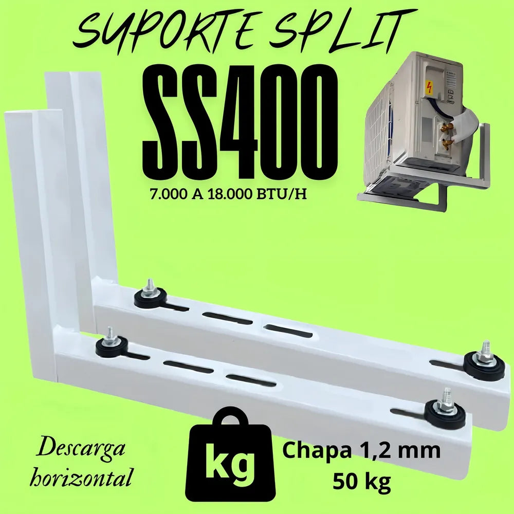 Este suporte é indicado exclusivamente para máquinas com capacidades abaixo relacionas, em modelos de condensadoras com descarga de ar quente na posição horizontal (frontal). Para modelos de condensadoras com descarga vertical (para cima), o suporte mais adequado é o modelo SS450mm.