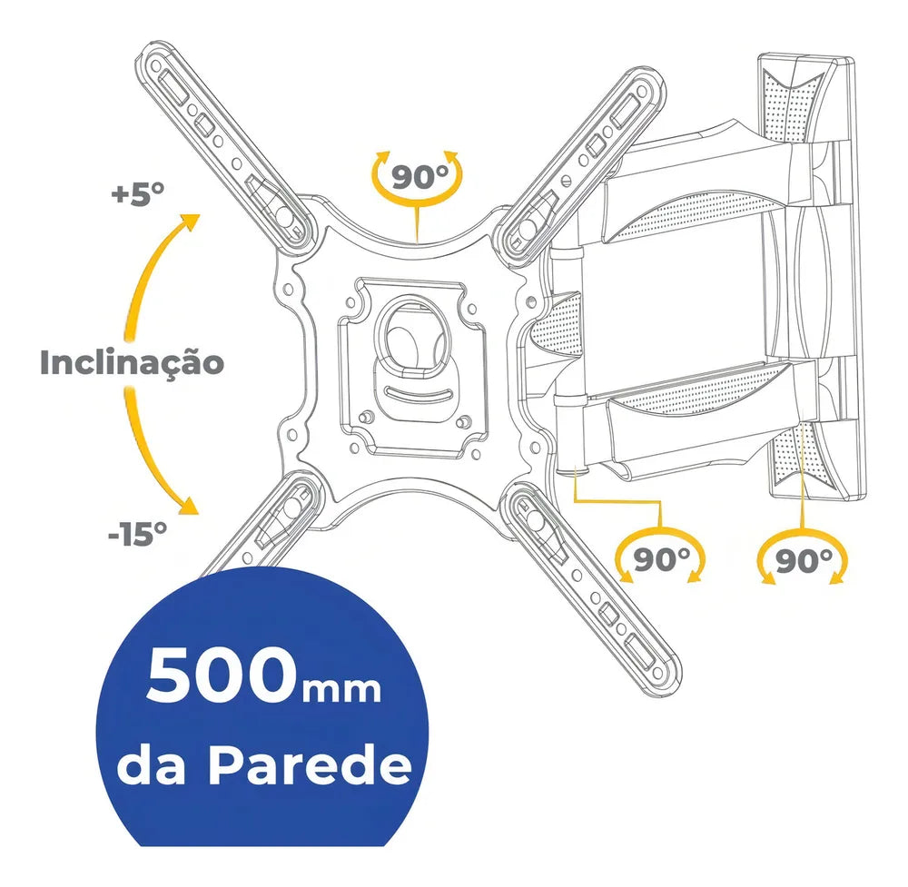 Pela grande versatilidade de posições, é uma ótima opção para instalar sua TV em cantos e espaços menores, é uma maravilha poder mudar a posição pra tampar o reflexo da janela na tela, até mesmo pra assistir do canto do quarto.